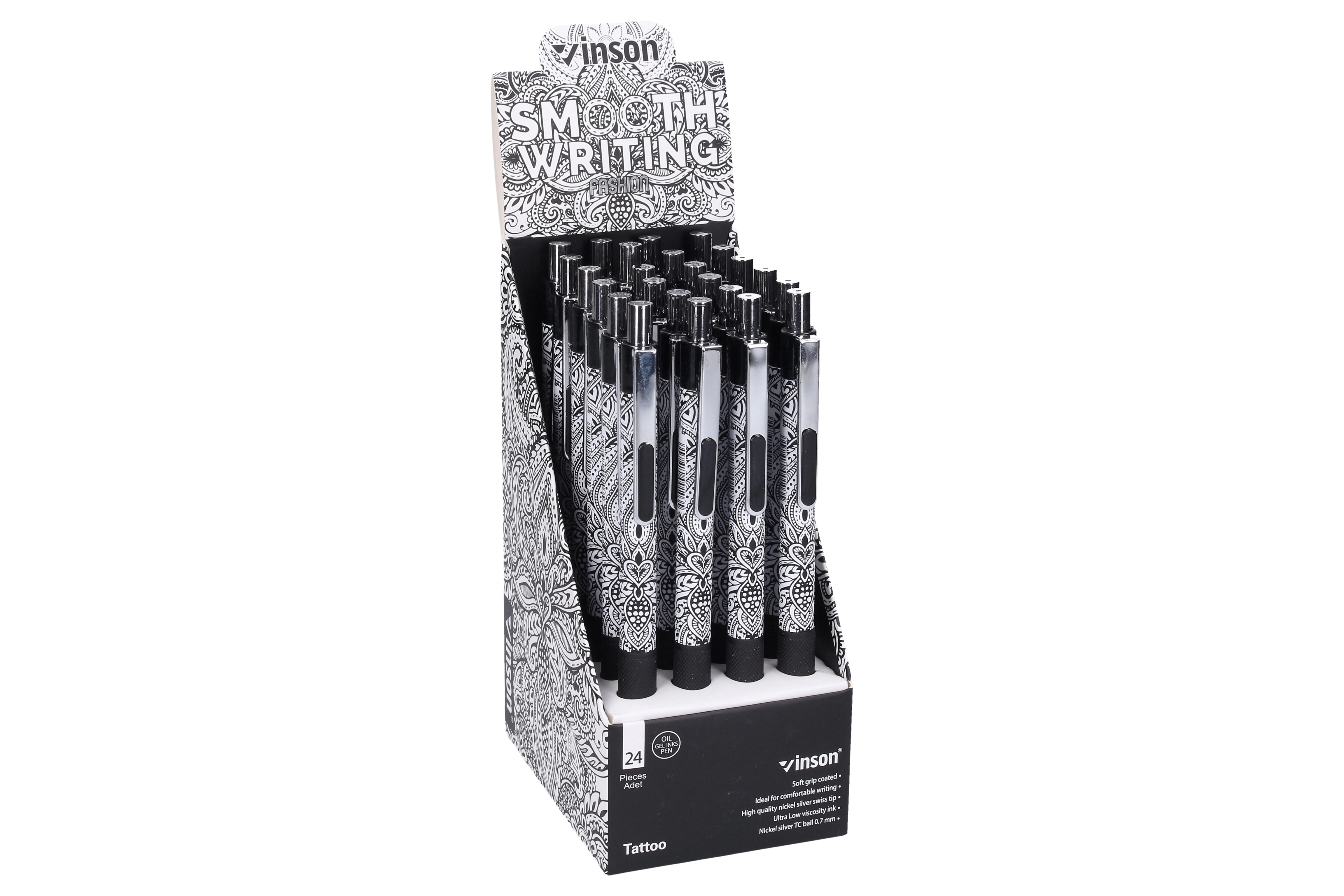 Pakuotėje rasite 24 vienetus praktiškoje dėžutėje–stende, kuri tinka parduotuvėms, registratūroms ar bendriems biurams. Puikus pasirinkimas mokykloms, įmonėms ir namams, kai reikia visada turėti pakankamai rašymo priemonių po ranka.