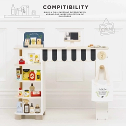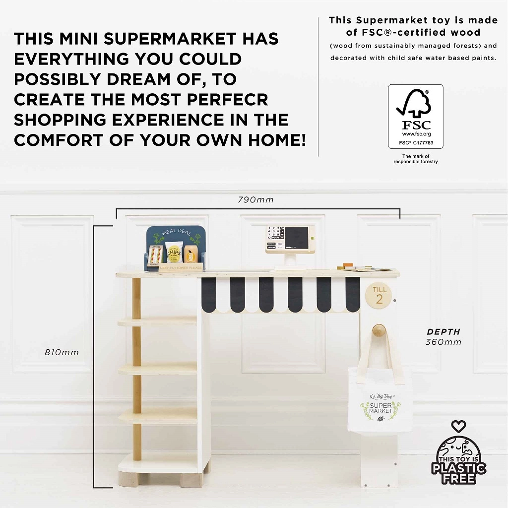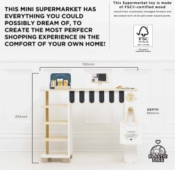 Sukurkite vaikams jų nuosavą parduotuvę su gražiu mediniu LE TOY VAN stendu. Šiame rinkinyje yra kasos aparatas, konvejerio juosta, skaitytuvas ir gausūs maisto produktų priedai tikroviškam apsipirkimo žaidimui. Pagaminta iš FSC medienos ir natūralios medvilnės, 100% be plastiko, saugu ir patvaru kasdieniam žaidimui.
