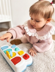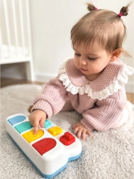 Mygtukai, ratukas ir jungiklis padeda linksmai treniruoti pirštukus ir akies–ranka koordinaciją.