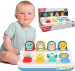 Šis spalvingas iššokantis žaislas iš prekės ženklo WOOPIE jungia mokymąsi ir pramogą vaikams nuo 18 mėnesių. Kiekvienas gyvūnėlis pasirodo paspaudus mygtuką, pasukus ratuką arba perjungus svirtelę – taip vaikai natūraliai lavina akies–ranka koordinaciją ir supratimą apie priežastį ir pasekmę.