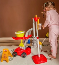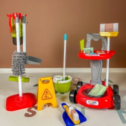 Šis vaikiškas valymo rinkinys – daugiau nei žaislas, tai smagus būdas išmokyti vaikus tvarkos, organizuotumo ir rūpinimosi aplinka. Dėl gausios komplektacijos ir mobilaus vežimėlio vaikai gali išbandyti įvairias veiklas ir mėgdžioti suaugusiuosius kasdieniuose darbuose.