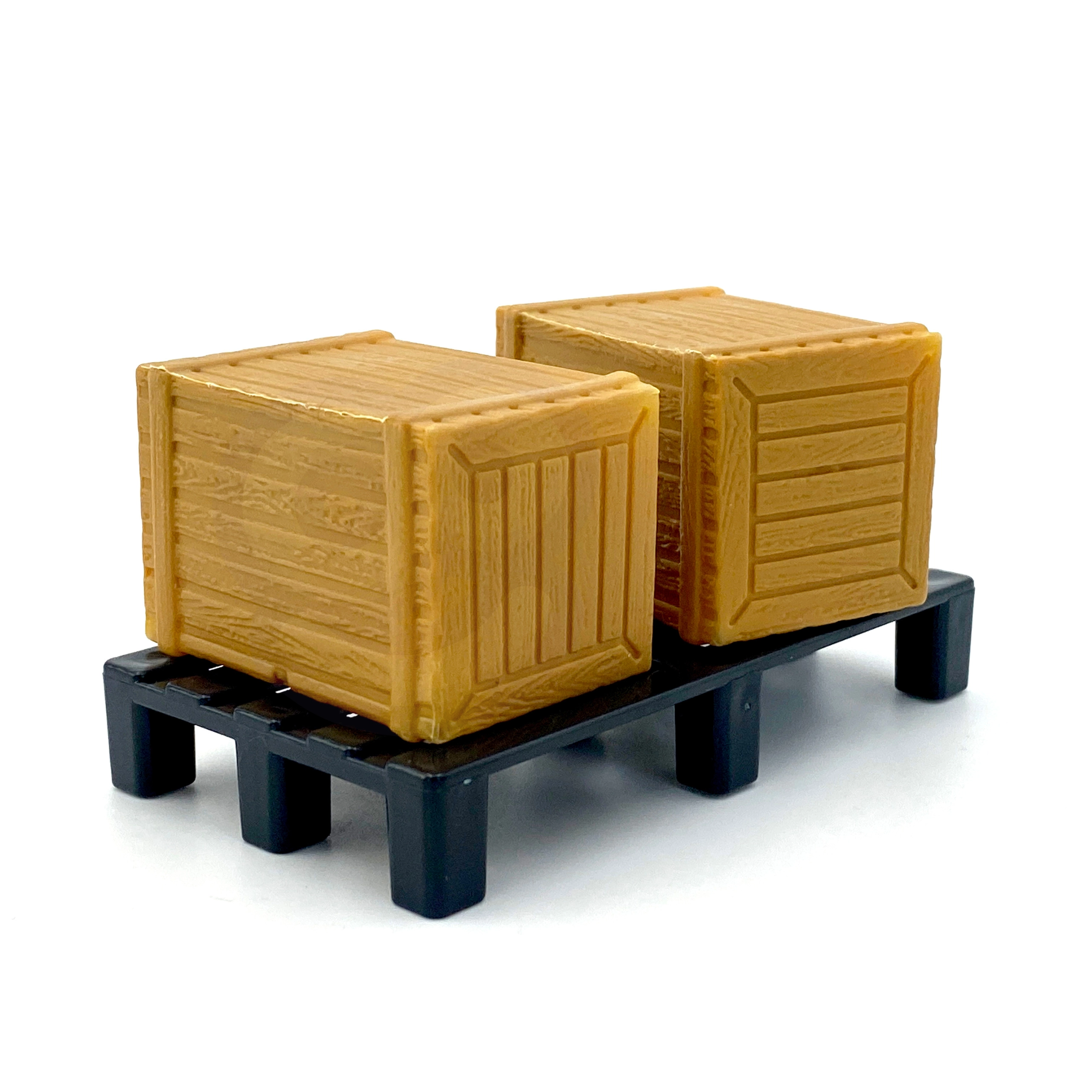 Rinkinyje yra mažos medinių dėžių imitacijos, kurios sustiprina realistiško žaidimo įspūdį.