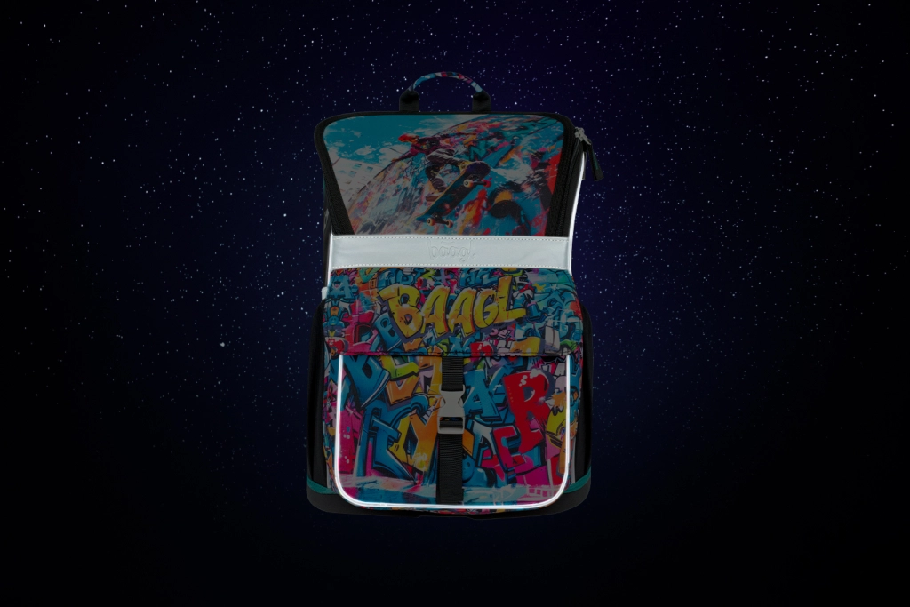 Patraukite dėmesį su spalvinga ir kūrybingais raštais išsiskiriančia BAAGL Zippy Skatepark kuprine.