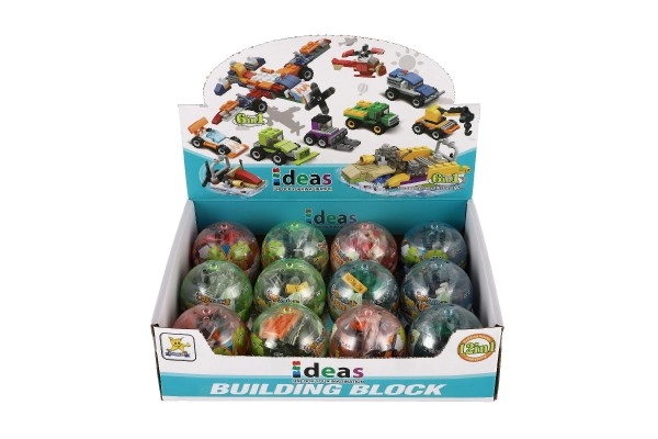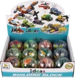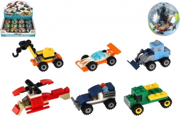 Atraskite linksmą transporto priemonių konstruktorių praktiškame permatomame 6 cm skersmens kamuolyje. Kiekviename kamuolyje slepiasi vis kitas modelis, pavyzdžiui, automobilis, sraigtasparnis, lenktyninis bolidas ar kranas, kuriuos vaikai lengvai surinks ir galės iš karto žaisti. Idealu kaip nedidelė dovana arba paskatinimas vaikams nuo 6 metų. Lavina kūrybiškumą, smulkiąją motoriką ir vaizduotę.