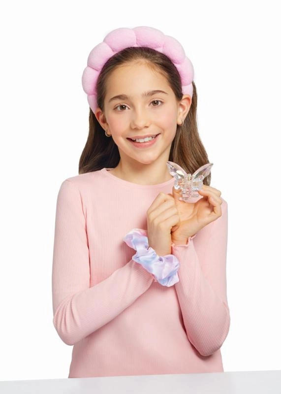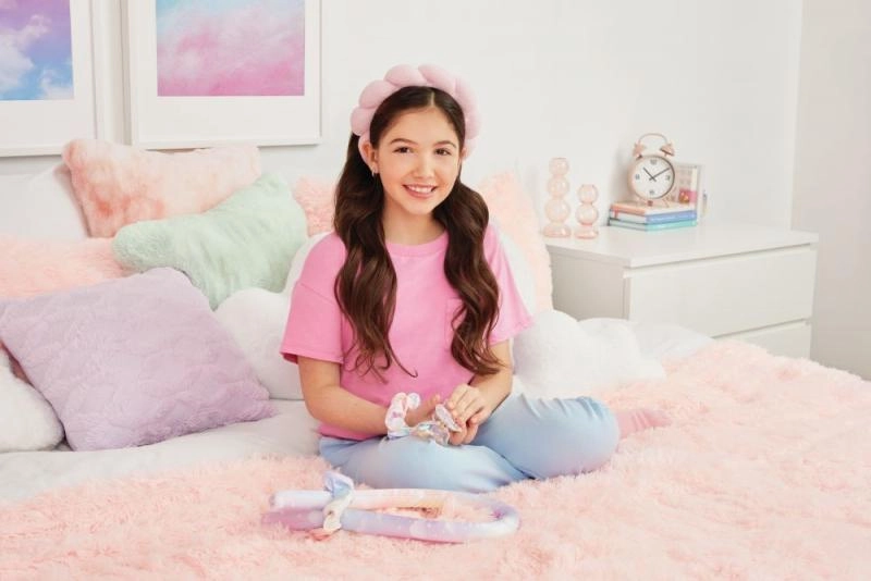 Komplekte yra drugelio segtukas greitam prisegimui ir pūkuotas lankelis, kuris laiko plaukus atokiau nuo veido vakarais ar mokantis. Pastelinės spalvos pradžiugins tiek mažąsias, tiek vyresnes šukuosenų mylėtojas.