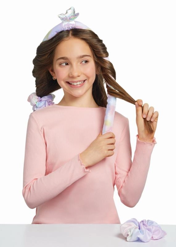 Minkšta tekstilinė juosta kuria natūralias bangas be žnyplių ir džiovintuvų. Tiesiog apvyniokite sruogas, pritvirtinkite scrunchies ir leiskite veikti.