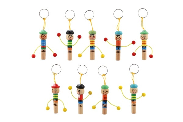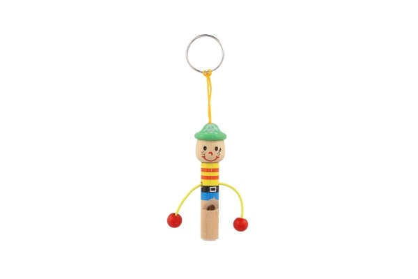 Mielas medinis pakabukas žmogeliuko formos su integruotu 8 cm ilgio švilpuku – stilingas ir praktiškas aksesuaras. Dėl kilputės jį lengvai prisegsite prie raktų, kuprinės ar penalo. Išsiskiria linksmomis spalvomis ir žaismingu dizainu, todėl pradžiugins ir vaikus, ir suaugusiuosius. Rinkitės iš įvairių rūšių mišinio ir mėgaukitės lengva ir patvaria medine konstrukcija bei praktišku švilpuku visada po ranka.