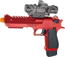 Elektrinis vaikiškas pistoletas derina šiuolaikišką išvaizdą ir praktišką funkcionalumą. Dėl visiškai automatinio režimo pakanka nuspausti gaiduką – ir žaidimo tempas akimirksniu išauga. Patvaraus plastiko korpusas ir patogi rankena užtikrina gerą sukibimą net ilgesnio žaidimo metu; raudonai juodas dizainas ir nuimamas imituotas optinis taikiklis suteikia žaislui patrauklų stilių.