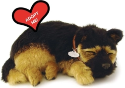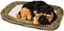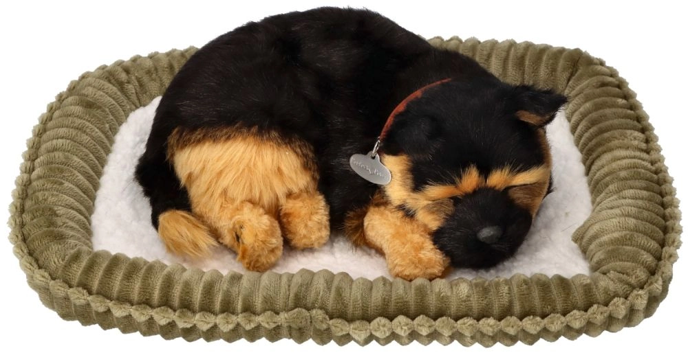 Padovanokite vaikams ar sau raminantį draugą: šis vokiečių aviganio šuniukas švelniai „kvėpuoja“ ir patogiai ilsisi savo minkštame guolyje. Realistiškos detalės, kontrastingas juodai rudas kailis ir miela mieganti poza daro jį idealia dovana šunų mylėtojams.