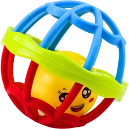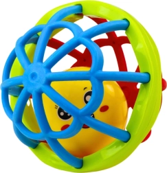Viduje esantis geltonas plastikinis rutuliukas pakratytas skleidžia švelnų barškučio garsą ir skatina sąveiką bei smalsumą. Ergonomiška forma puikiai tinka mažoms vaikų rankoms, o nedidelis svoris palengvina laikymą.