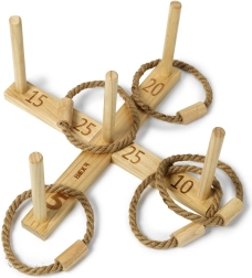 Smagus ir paprastas žaidimas visai šeimai: meskite virvinius žiedus ant sunumeruotų kaiščių ir rinkite taškus. Pagaminta iš kokybiškos medienos su tvirtu kryžminiu pagrindu, tinka sodui, paplūdimiui ir atostogoms. Sertifikuota FSC mediena palaiko tvarią gamybą.