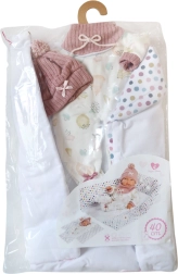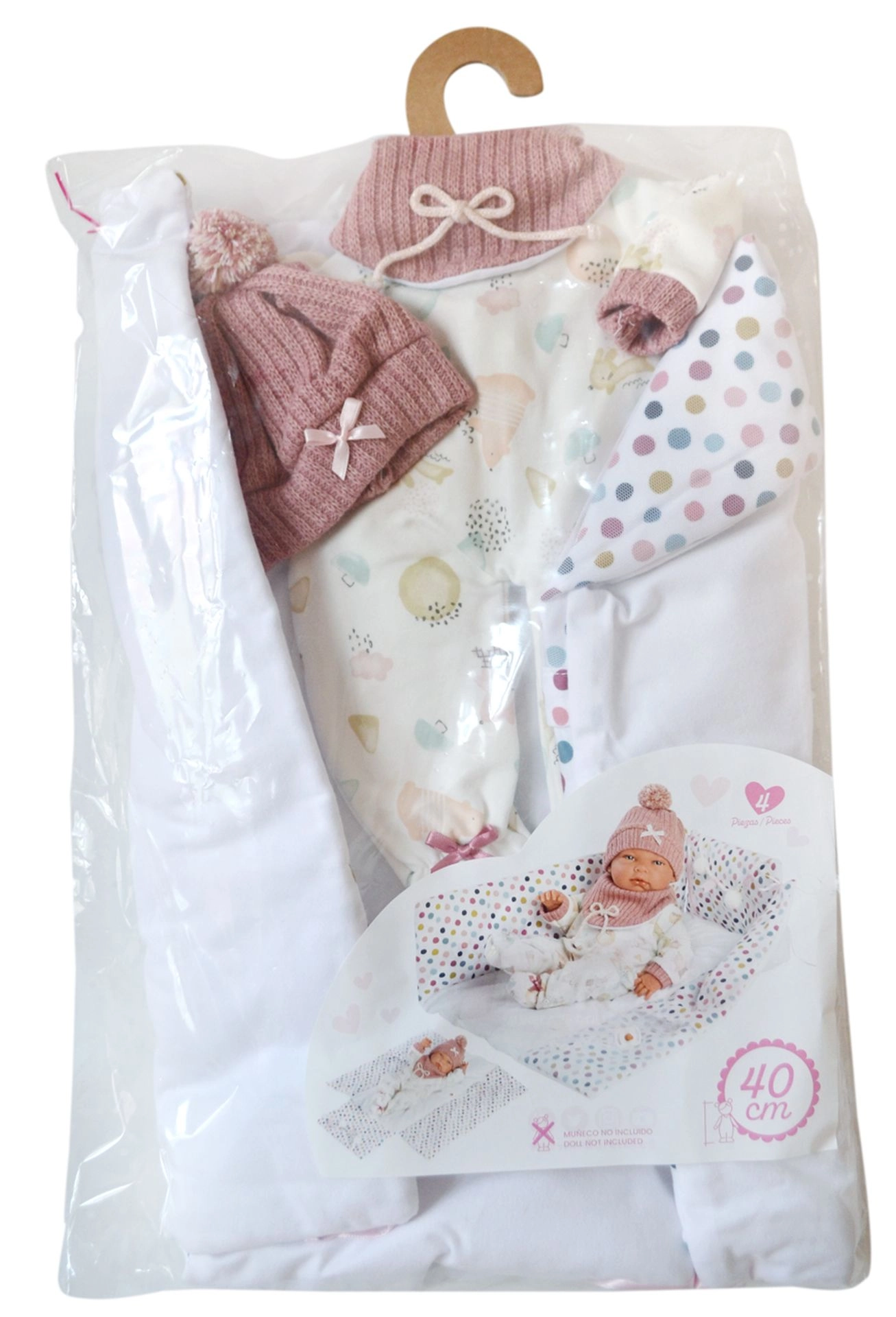 Šis nuostabus 4 dalių rinkinys siūlo pilną aprangą jūsų New Born lėlei kūdikiui. Jame yra trys drabužių dalys ir novatoriškas kilimėlis su bumbuliukais, kurį lengvai galima paversti žaidimų maniežu. Kiekviena detalė kruopščiai apdirbta, kad jūsų vaikas patirtų maksimalų džiaugsmą ir pasitenkinimą žaidžiant.