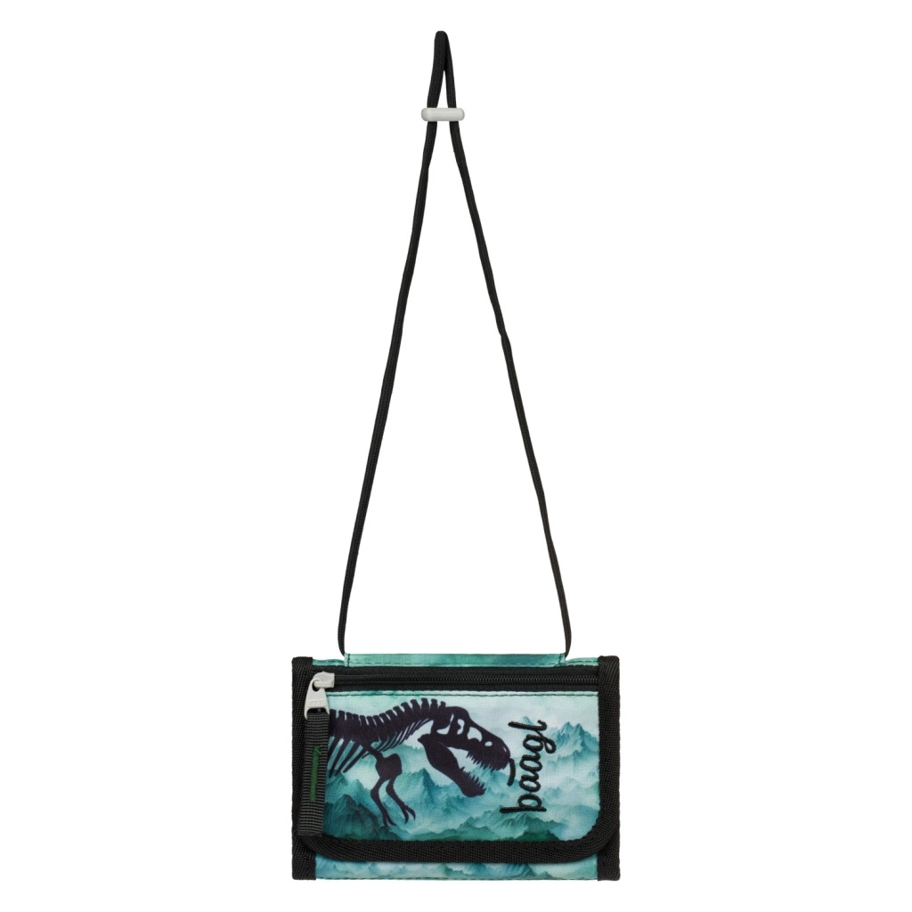 Kaklinė piniginė DINO siūlo patogią galimybę nešioti ant kaklo ir turi vietą vardinei kortelei.
