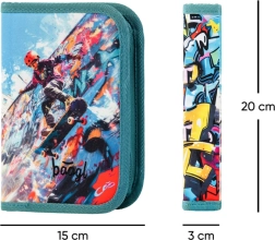 Šis klasikinis vieno skyriaus penalas su dviem atvartais pagamintas iš perdirbtos medžiagos ir suteikia vietos visiems būtiniausiems mokykliniams reikmenims. Erdvus dizainas leidžia lengvai išskleisti, todėl paprasčiau susiorientuoti viduje. Penalėje taip pat yra: