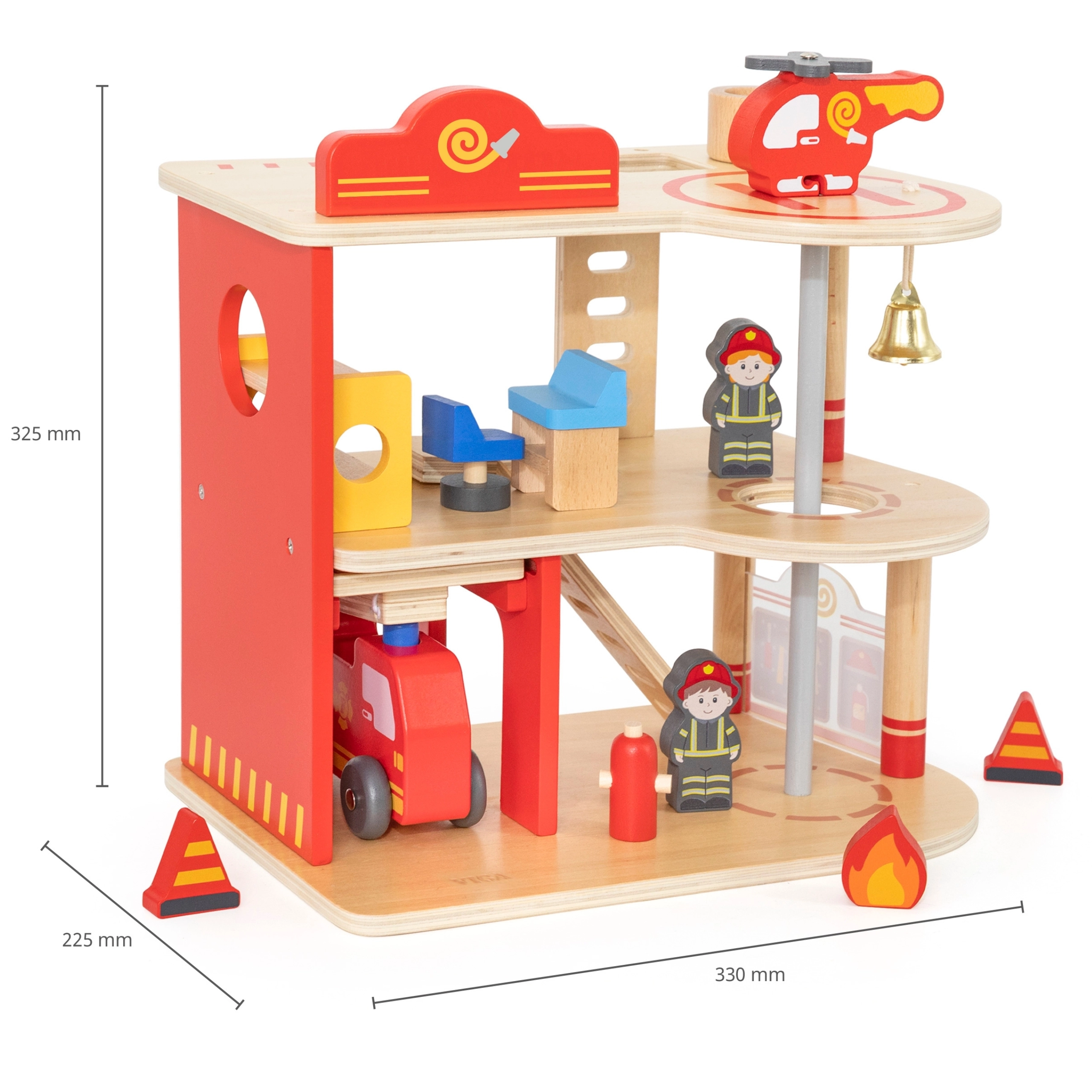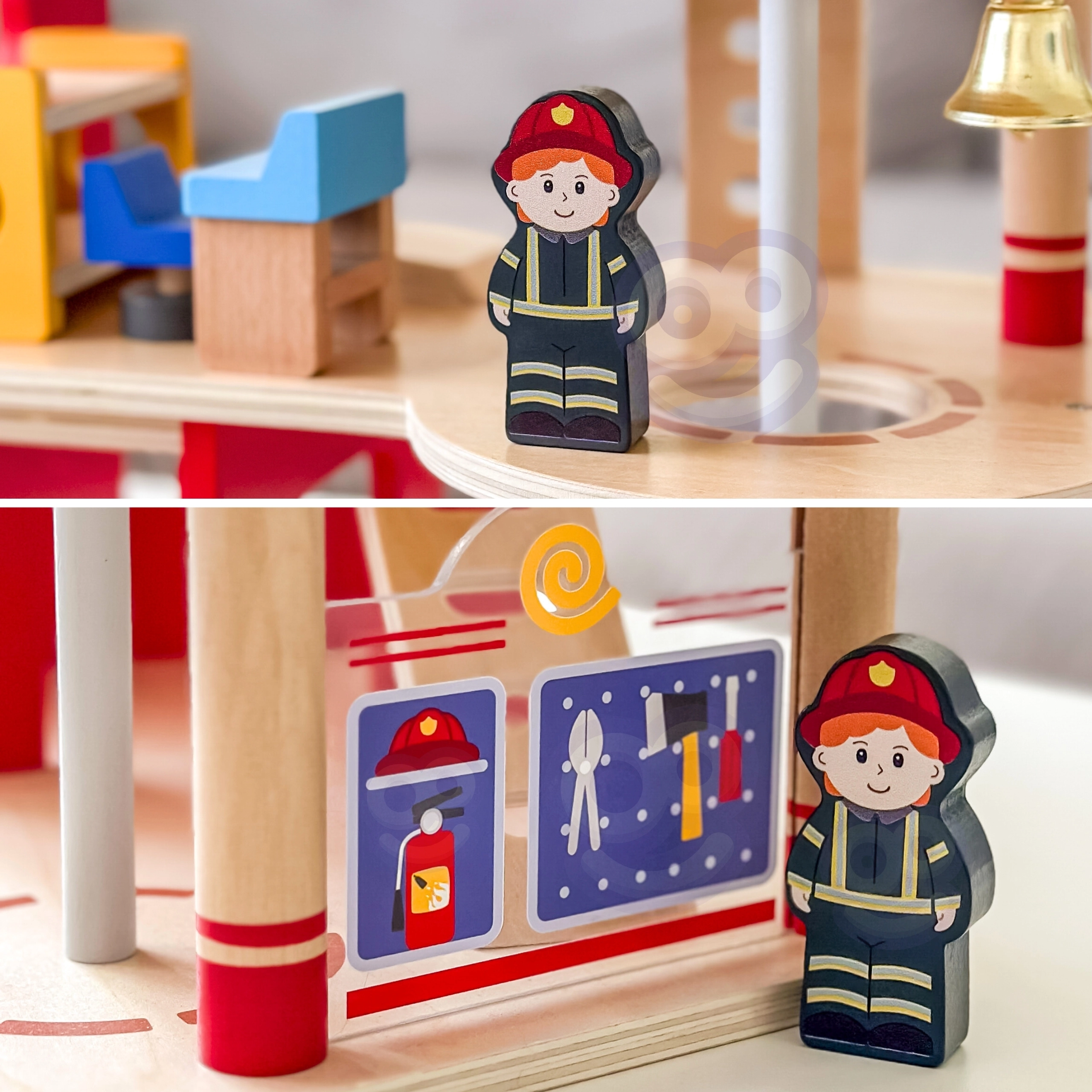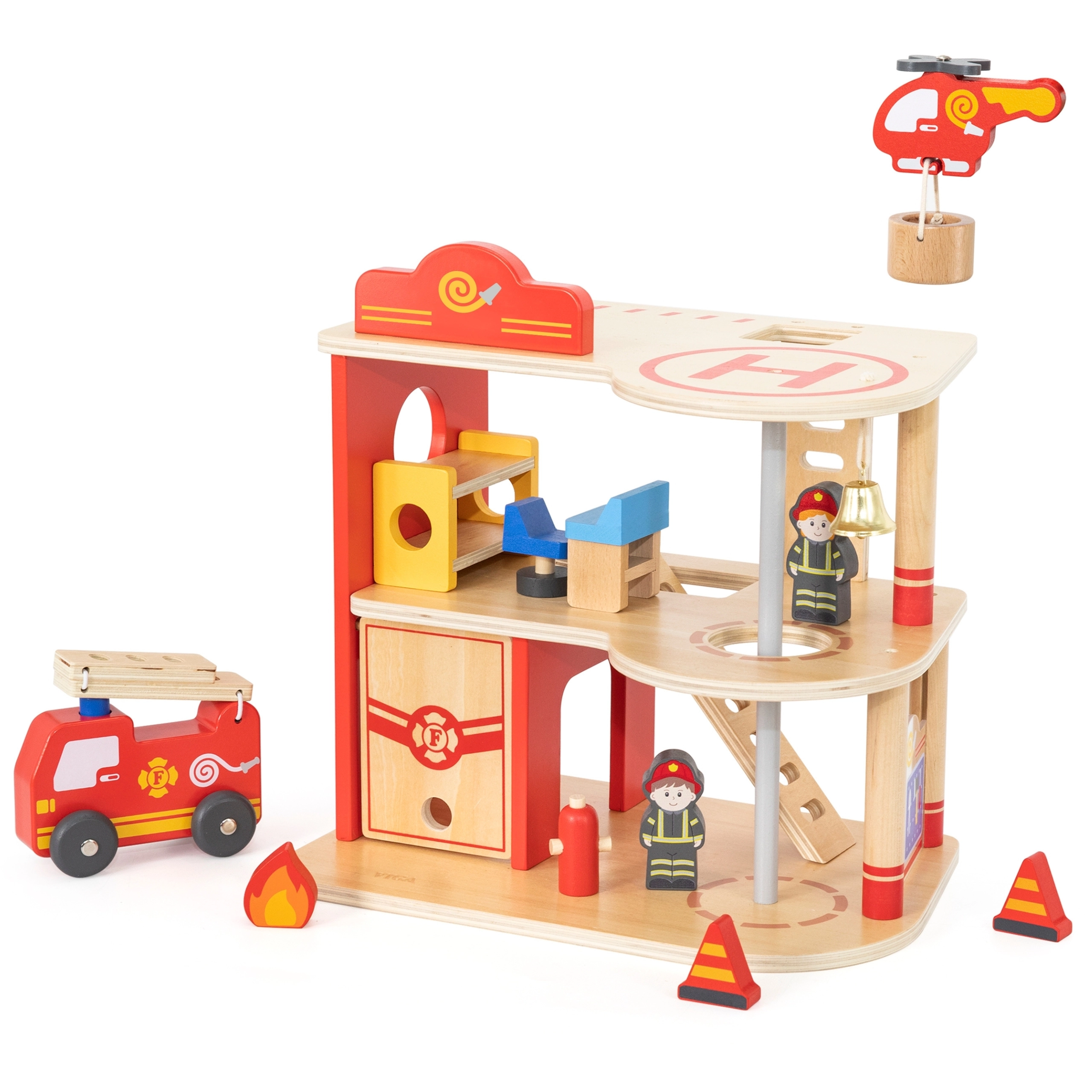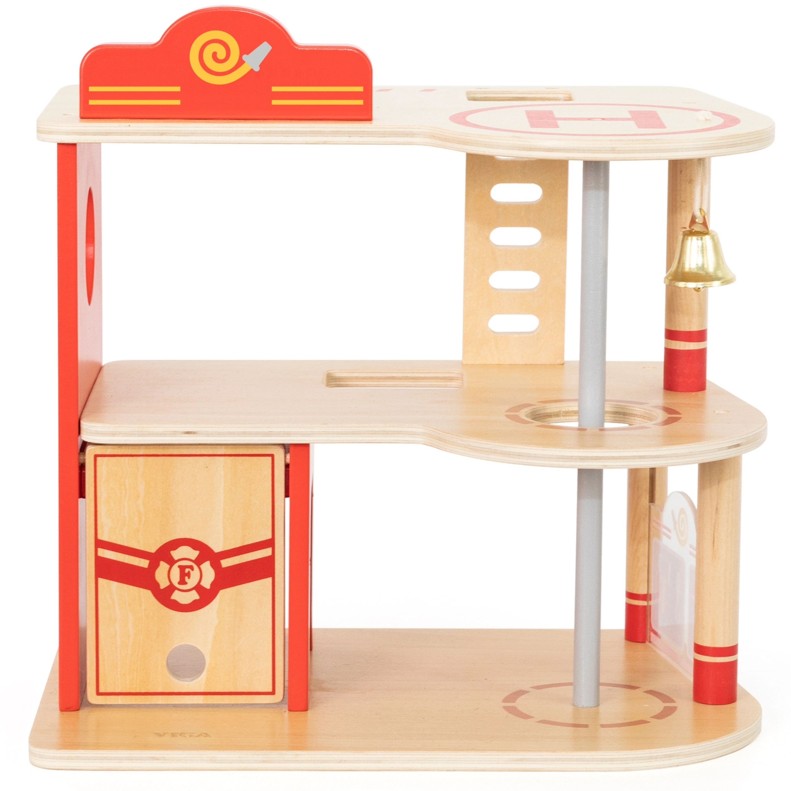 Ši tvirta medinė gaisrinės stotis su trimis aukštais suteikia vaikams nuo 3 metų valandų valandas dinamiško žaidimo. Pirmajame aukšte yra gaisrinės automobilio garažas ir vieta įrangai, antrajame – jauki poilsio zona su skambučiu ir greito nusileidimo stulpu, trečią aukštą vainikuoja heliportas gaisrinės sraigtasparniui.