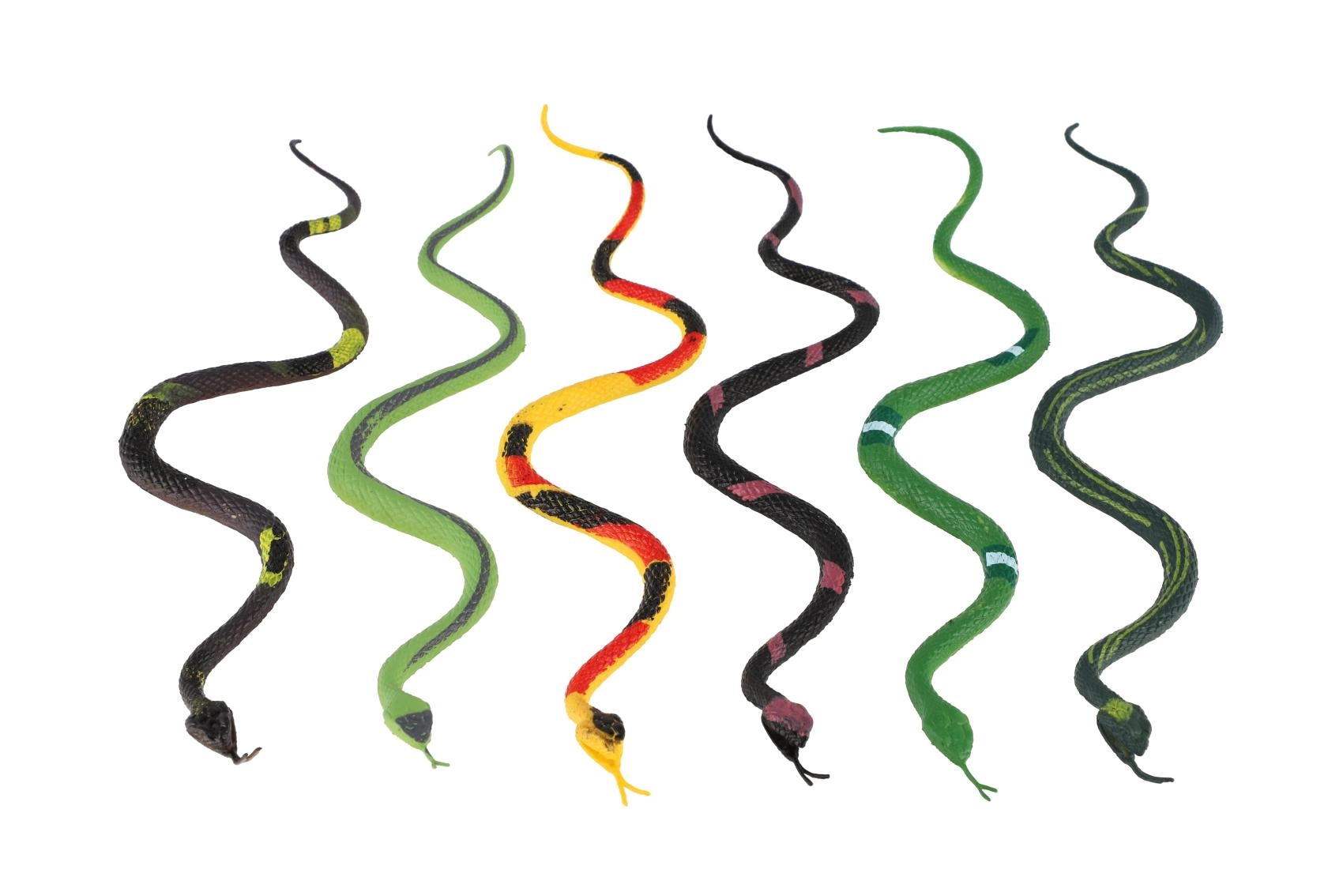 Atraskite rinkinį lanksčių plastikinių gyvačių, kurių ilgis 23 cm. Įvairių rūšių mišinys suteikia daug galimybių žaidimams, kolekcionavimui ir gamtos pažinimui. Gyvatės turi realistiškas tekstūras, yra lankščios ir tinkamos vaikams nuo 3 metų. Puikiai tinka vaizduotei lavinti, smulkiajai motorikai ir susidomėjimui fauna ugdyti.