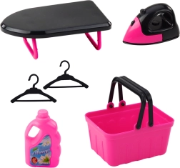 Be skalbimo mašinos, rinkinyje yra lygintuvas, lyginimo lenta, skalbinių krepšys ir kiti priedai, leidžiantys vaikams žaisti skalbimą, lyginimą ir skalbinių kabinimą. Viskas yra saugu, pagaminta iš kokybiškų medžiagų ir atitinka Europos standartus.