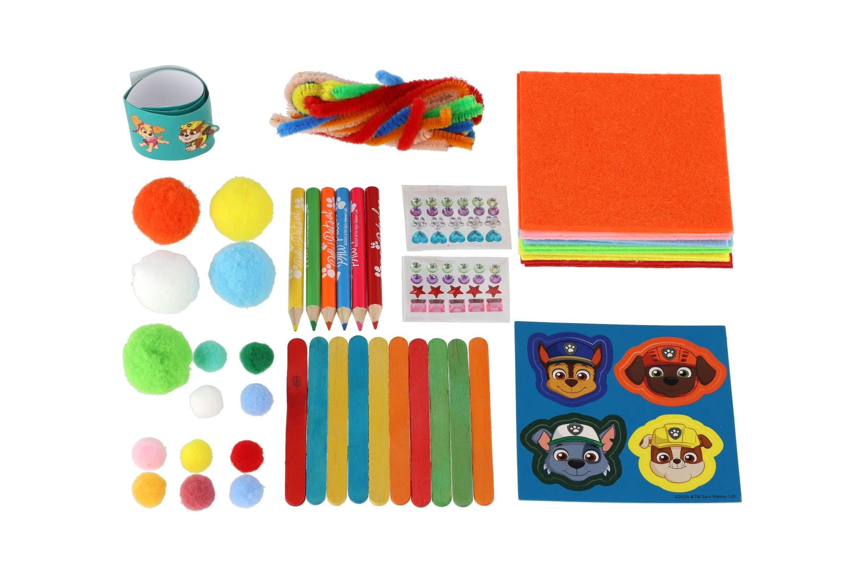 Viduje rasite įvairių reikmenų koliažams, klijavimui ir piešimui: minkštas pompomas, pūkuotas vielutes (chenille), putplasčio ar veltinio formas, pagaliukus, pieštukus ir lipdukus su mėgstamais šuniukų herojais. Taip pat įtrauktos kortelės ir veiklos, pavyzdžiui, „susikurk savo skydą“, kurios lavina kūrybiškumą ir įgūdžius.