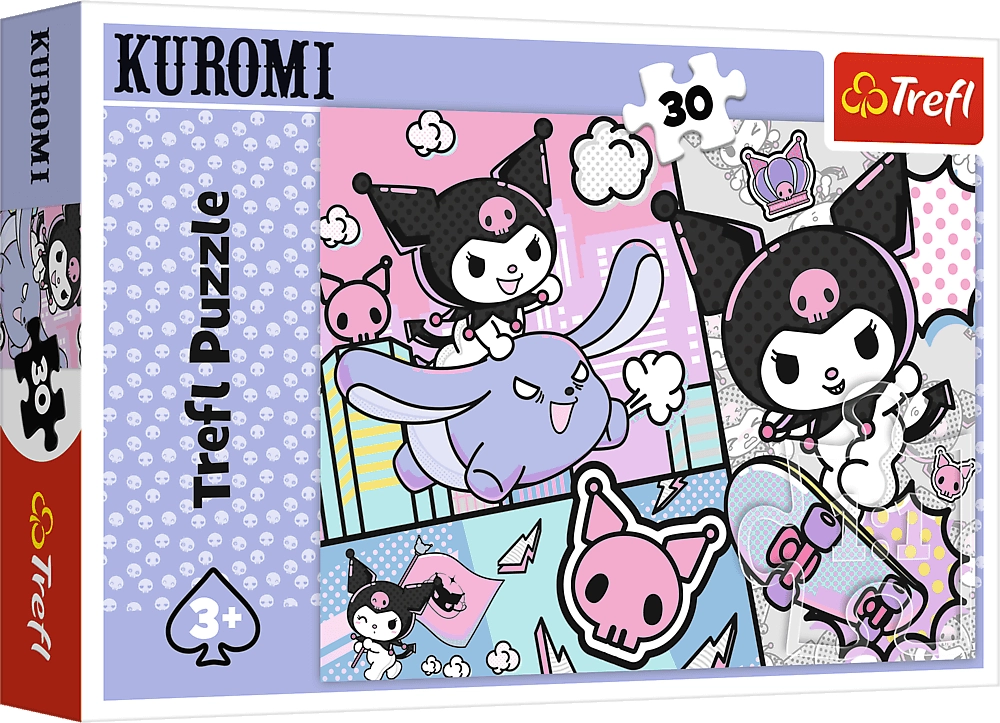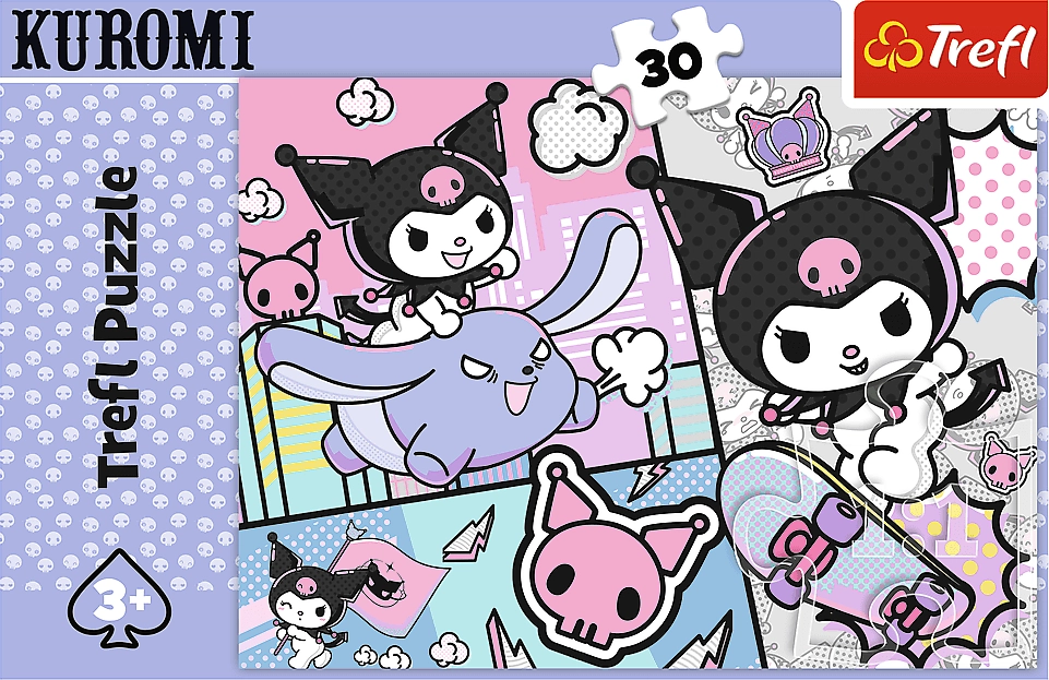 Mielos dėlionės su KUROMI motyvu pradžiugins tiek mažus, tiek didelius gerbėjus. Rinkinyje yra 30 dalių, o sudėjus gaunamas paveikslas, kurio dydis 27 × 20 cm. Puikiai tinka trumpam žaidimui, smulkiajai motorikai ir kantrybei lavinti.