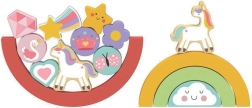 Visi blokeliai pagaminti iš medienos, turinčios FSC sertifikatą, kuris užtikrina tvarią žaliavų kilmę. Žaislas ne tik teikia pramogą, bet ir lavina smulkiąją motoriką, padėdamas mažoms rankytėms mokytis dėlioti įvairias formas.