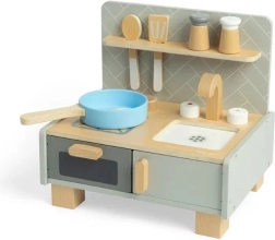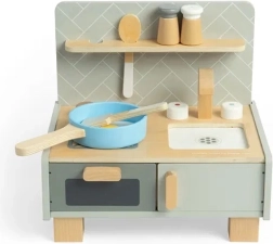Kompaktiškas dizainas švelnių neutralių spalvų puikiai tinka bet kuriam vaikų kambariui ar žaidimų erdvei. Pagaminta iš FSC® sertifikuotos medienos ir dažyta netoksiškais dažais, todėl užtikrina tvarią ir saugią pramogą vaikams nuo 3 metų. Be pramogos, ši virtuvėlė skatina fantazijos ir vaizduotės ugdymą, kai vaikai vaidina virtuvės vaidmenis.
