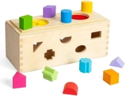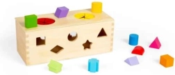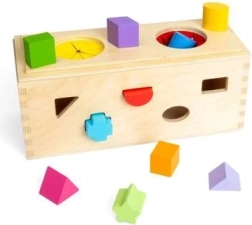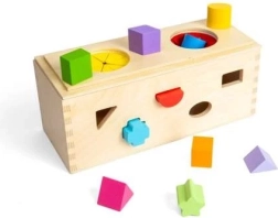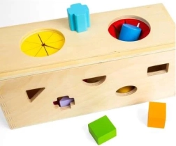 Praturtinkite vaikų jutiminius potyrius su šia medine paslapčių dėžute. Įdėkite 10 formų į atitinkamas angas dėžutės šonuose. Per du viršuje esančius atvirus langelius vaikai gali įkišti rankas, apčiuopti ir atpažinti formas dėžutės viduje, taip gerindami savo motorinius įgūdžius ir rankų–akių koordinaciją.