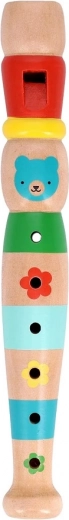 Medinė fleita Petit Collage – puikus įrankis vaikų muzikalumui ugdyti. Ji turi lygų paviršių, ryškias spalvas ir meškučio dekorą, kurie skatina kognityvinę raidą, akių-rankų koordinaciją ir klausos mokymąsi.