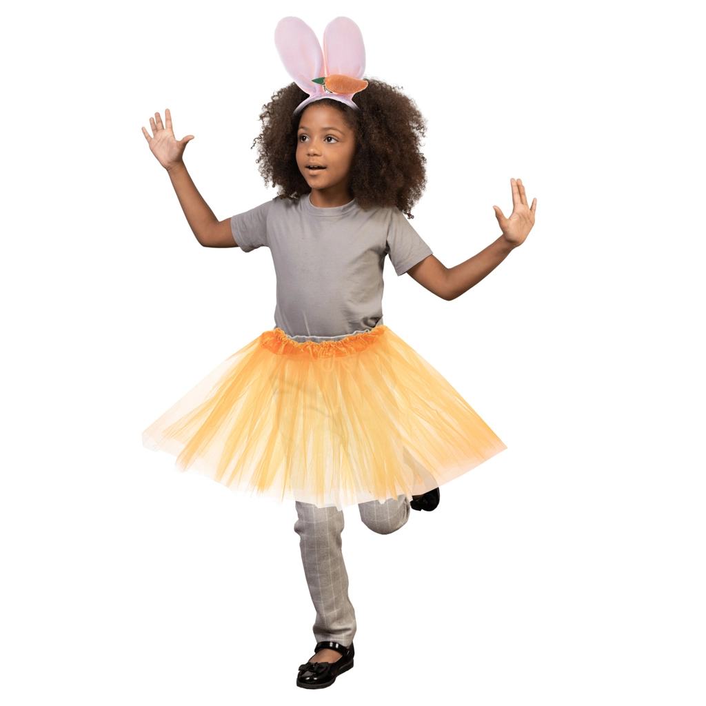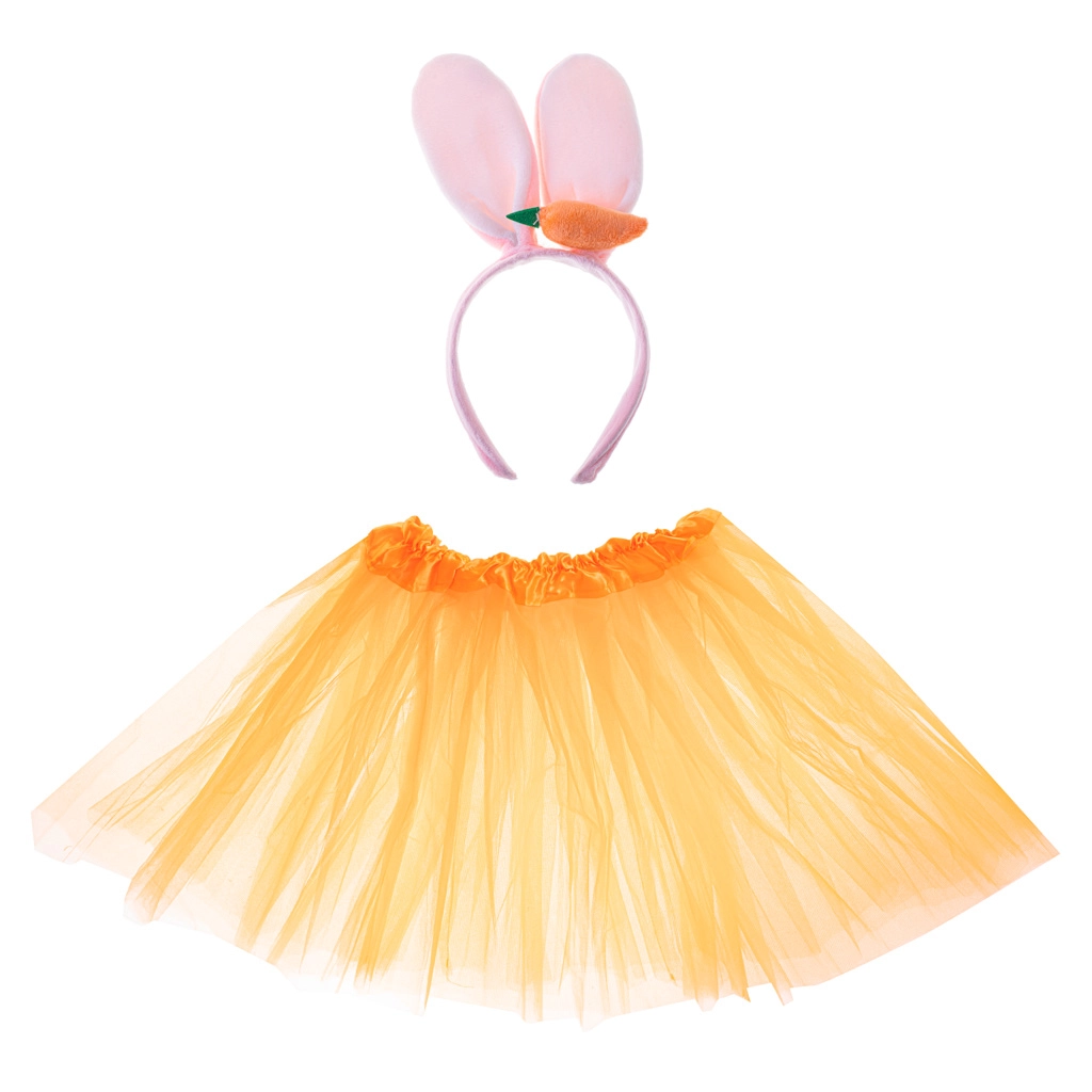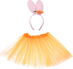 Sudėtyje yra oranžinis tiulio sijonas ir lankelis su ausytėmis bei morka.