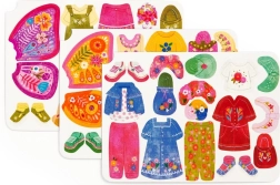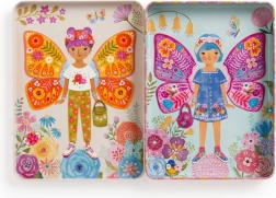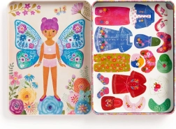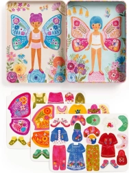 Rinkinyje yra dvi iliustruotos scenos su drugelių merginomis, kurios laukia, kol jas aprengsite. Išbandykite daugiau nei 40 magnetukų su drabužiais ir drugelių sparnais trijose kortelėse. Kiekvieną detalę galima derinti pagal jūsų vaizduotę.