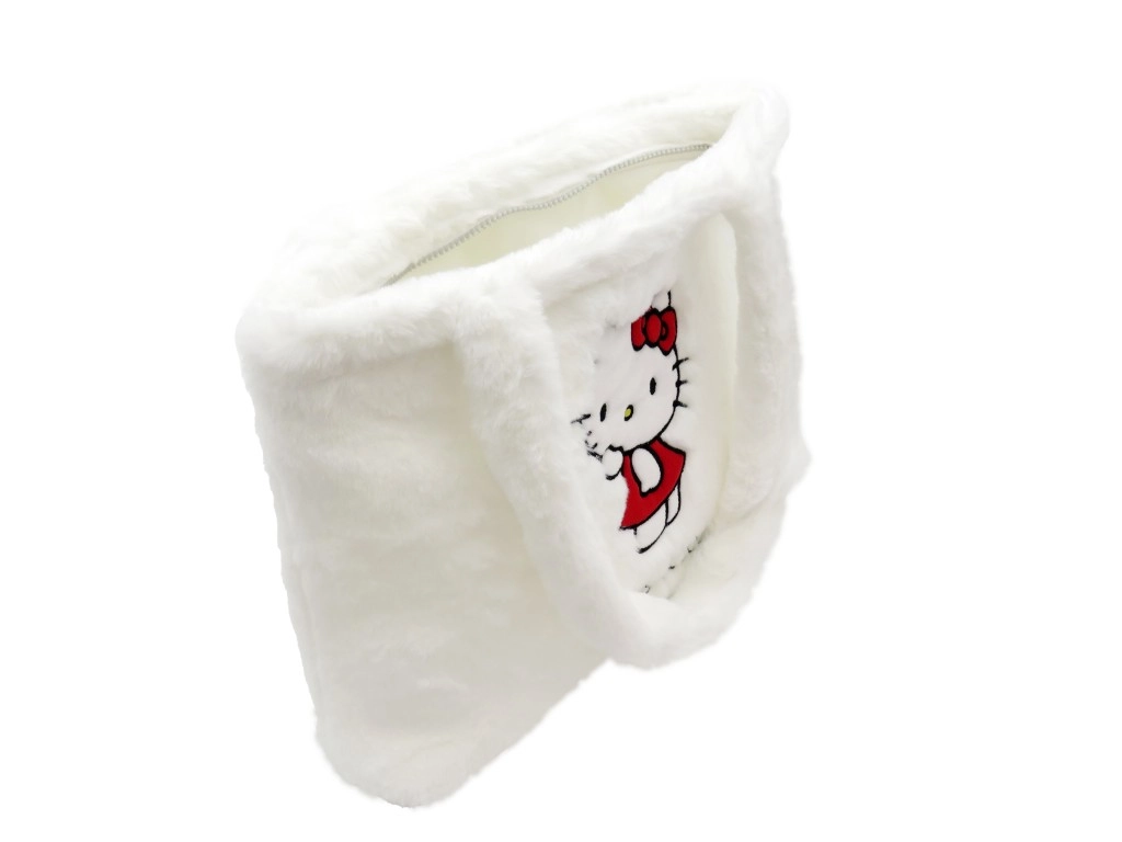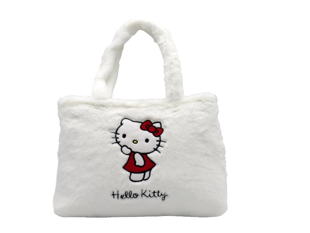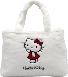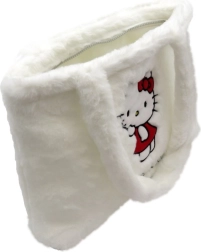 Didelė pliušinė Hello Kitty rankinė pagaminta iš kokybiškų medžiagų, užtikrinančių minkštumą ir patvarumą, ideali knygoms, buteliukams ir higienos reikmenims nešiotis.