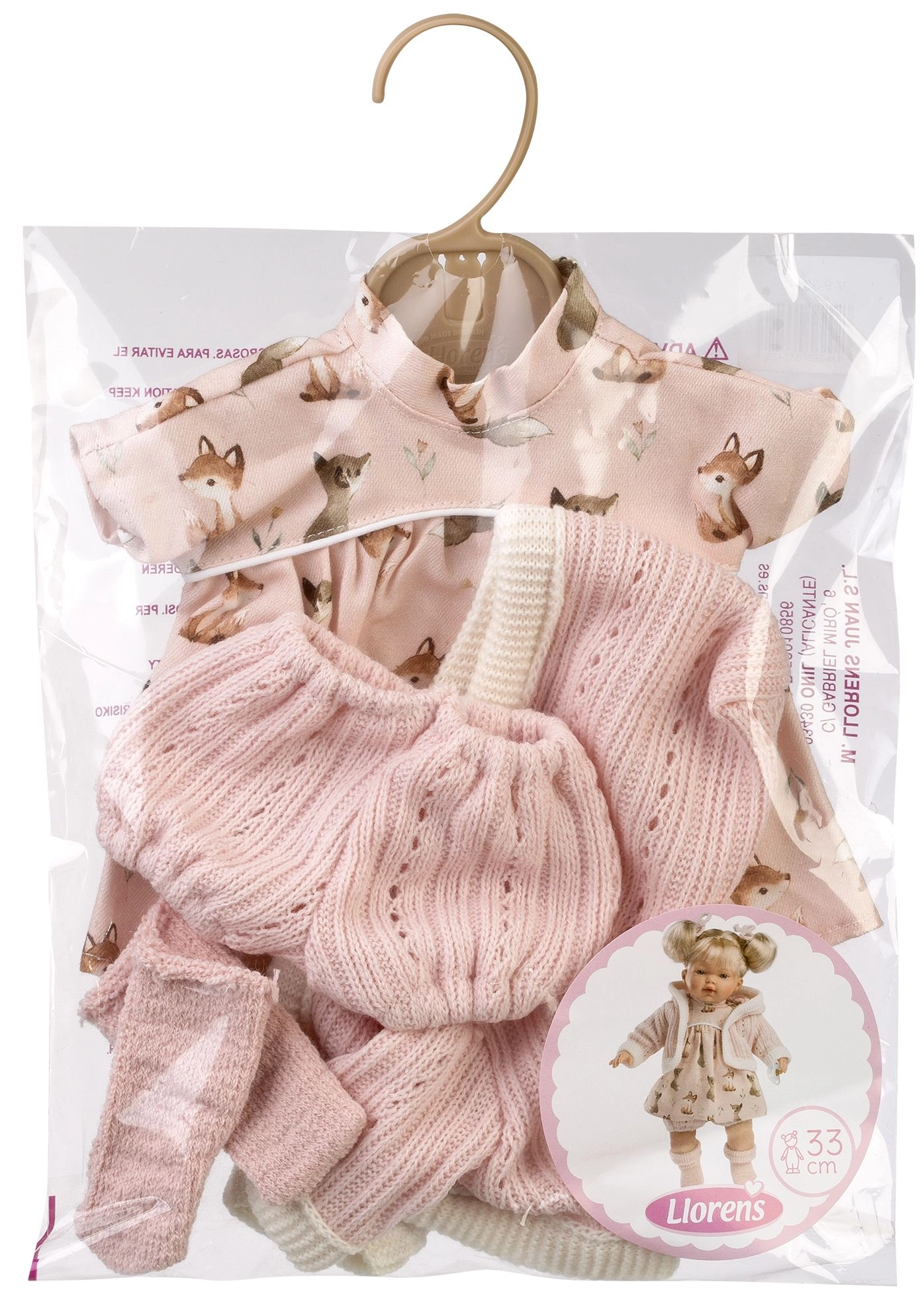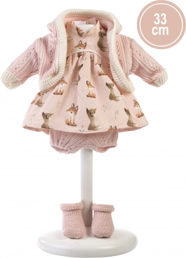 Pristatome aukštos kokybės Llorens prekės ženklo lėlių drabužėlius, sukurtus mažosioms elegantiškoms damoms. Šiame rinkinyje yra keturi kruopščiai sukurti drabužių elementai, puikiai tinkantys 33 cm dydžio lėlėms.