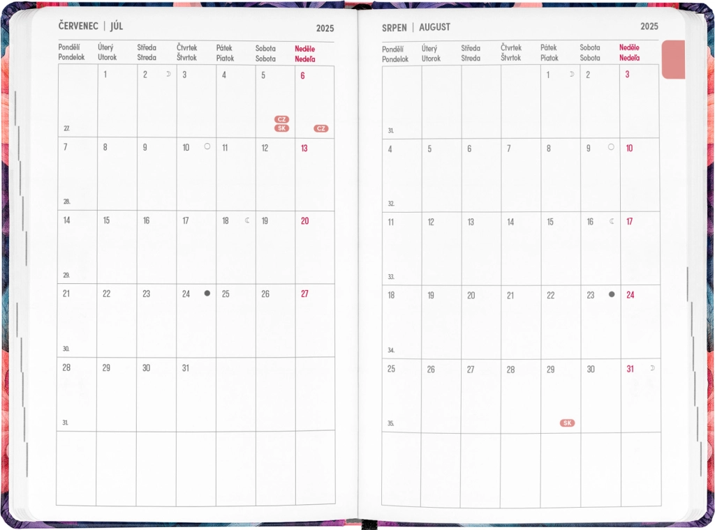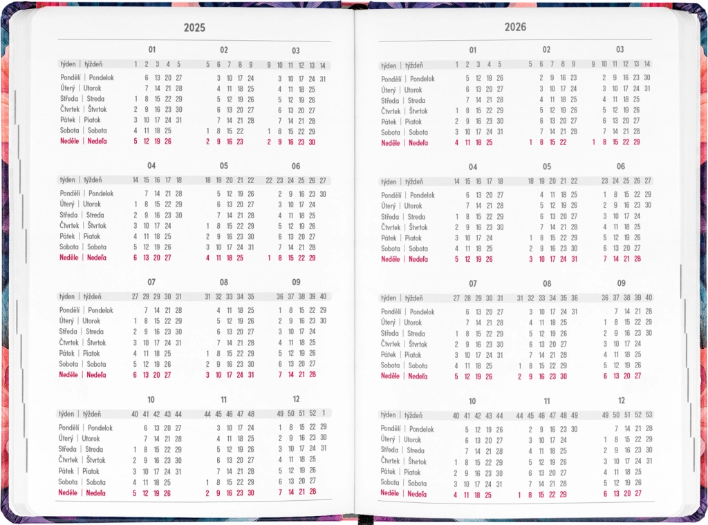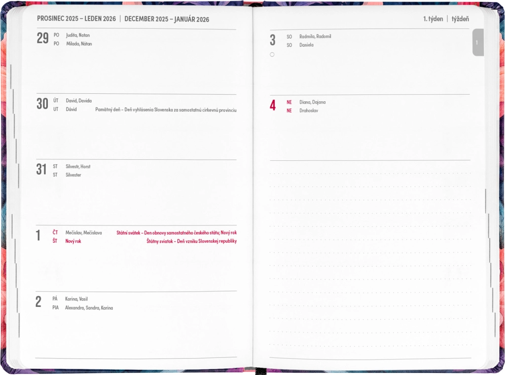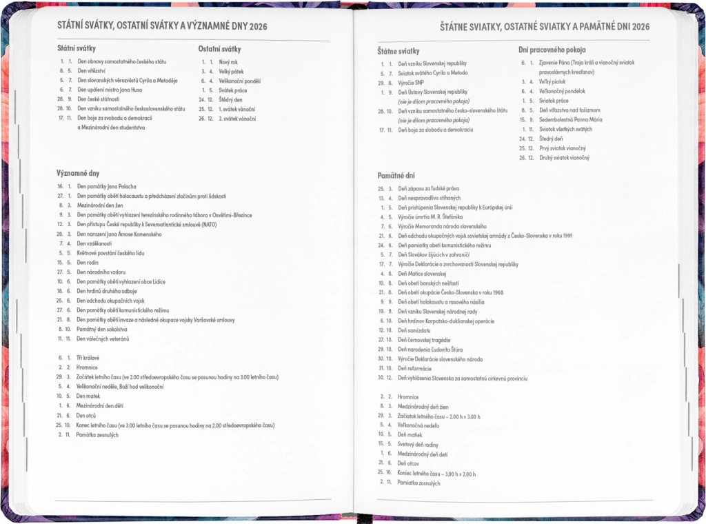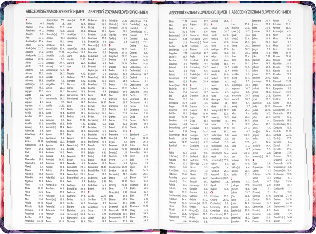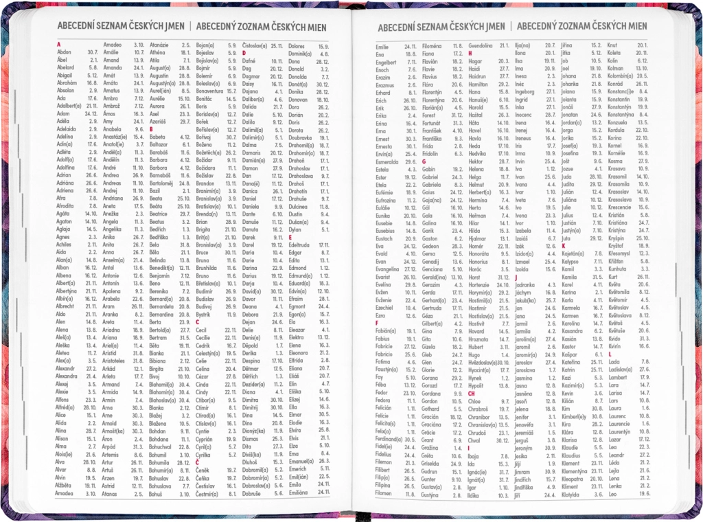- Čekų–slovakų savaitinį eilinį kalendorių su vardadieniais ir šventėmis.