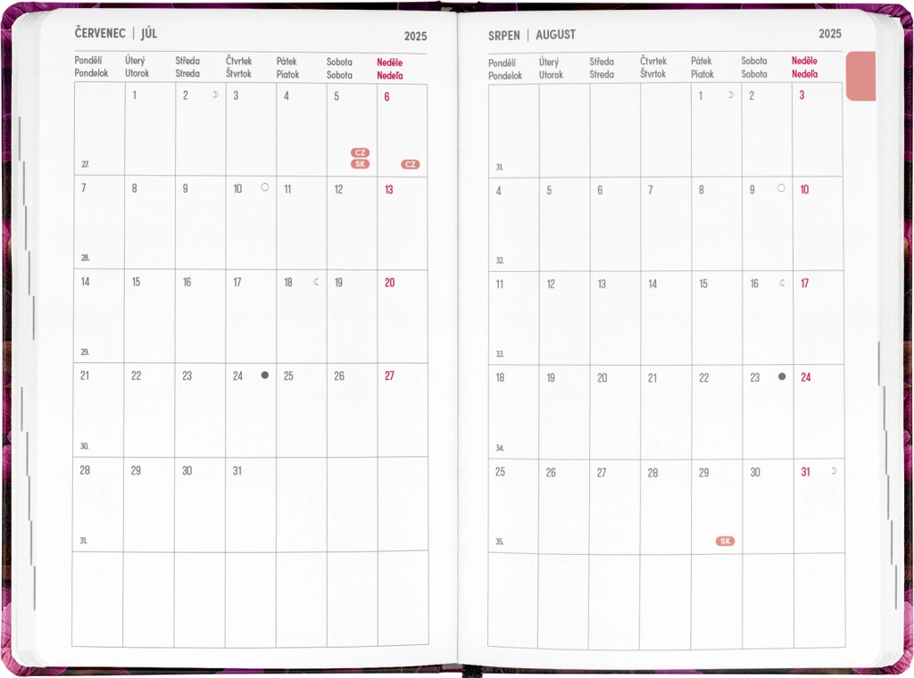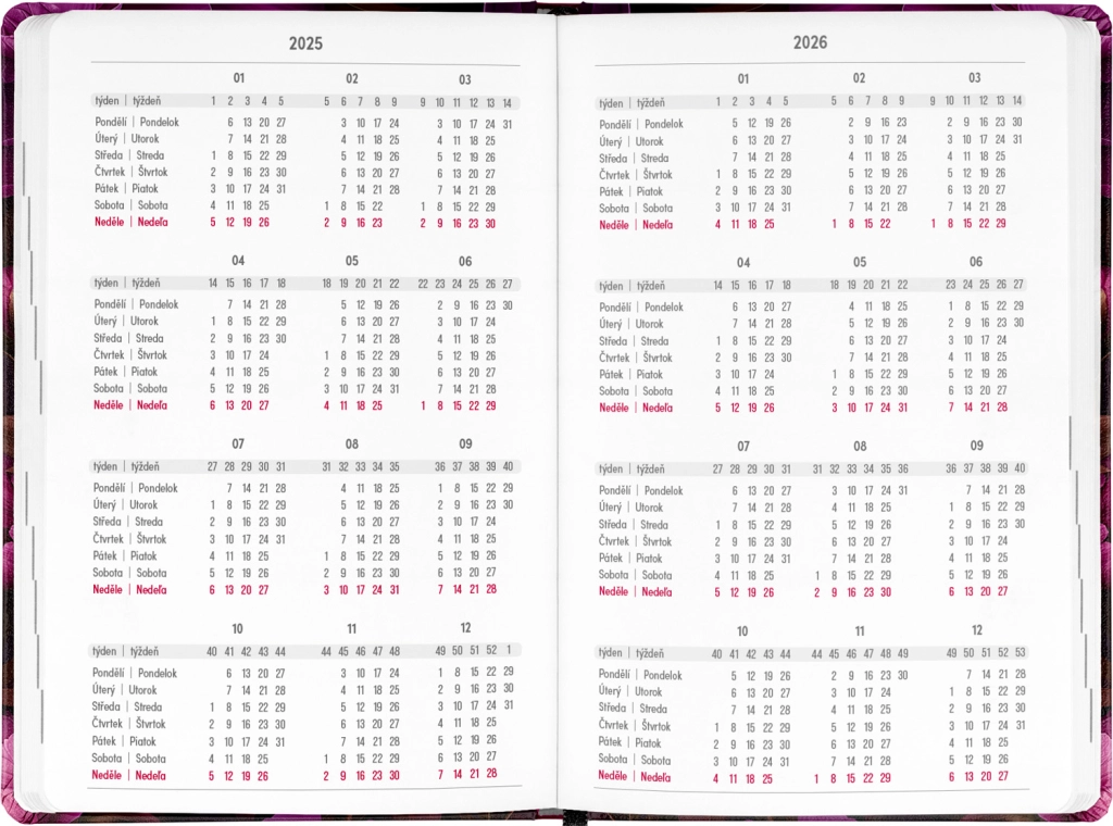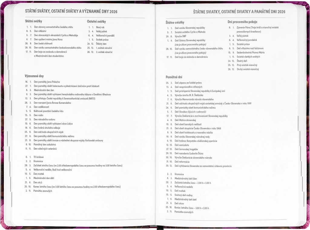 - Čekų–slovakų savaitinis linijinis kalendorius su vardais ir šventėmis