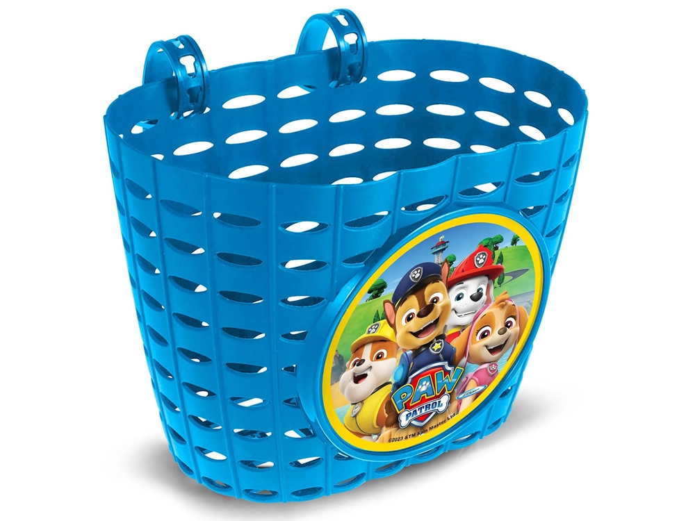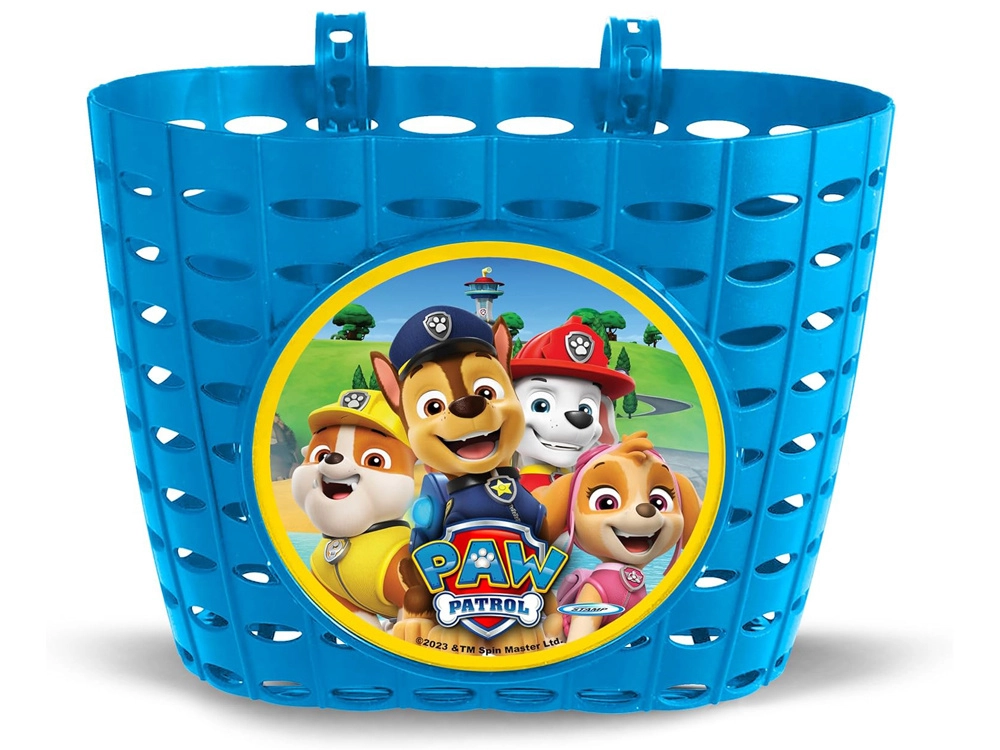 Mėlynas reguliuojamas dviračio ir paspirtuko krepšelis su mėgstamais Šuniukų patrulio personažais yra tobulas vaikams, kurie nori turėti viską, ko reikia nuotykiams gryname ore.