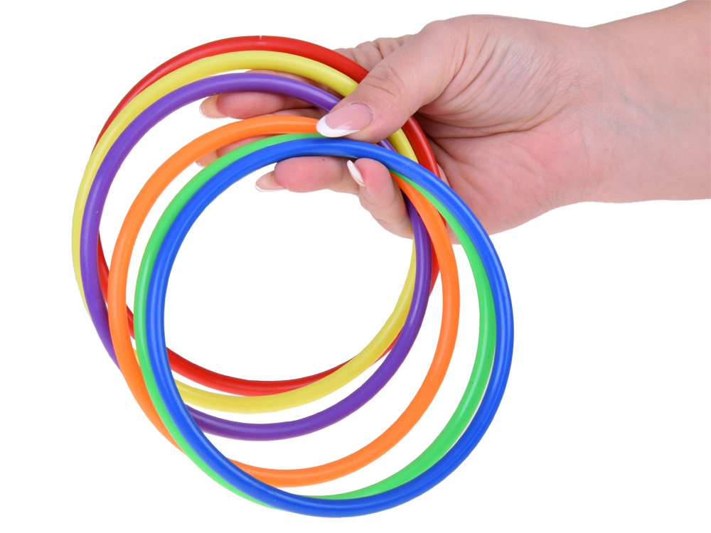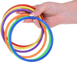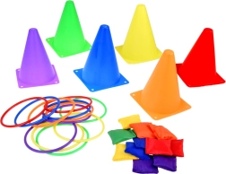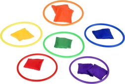 Šis žaidimų rinkinys idealus vaikams, kurie mėgsta aktyviai leisti laiką. Jame yra šeši spalvoti kūgiai, dvylika tekstilinių maišelių ir dvylika plastikinių lankų, leidžiančių žaisti įvairius žaidimus. Vaikai gali gerinti koordinaciją ir taiklumą mėtydami bei taikydamiesi.