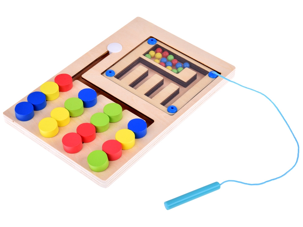 Labirintas su magnetine lazdele leidžia vaikams perkelti kamuoliukus taku, kas stiprina loginį mąstymą ir teikia pramogą.