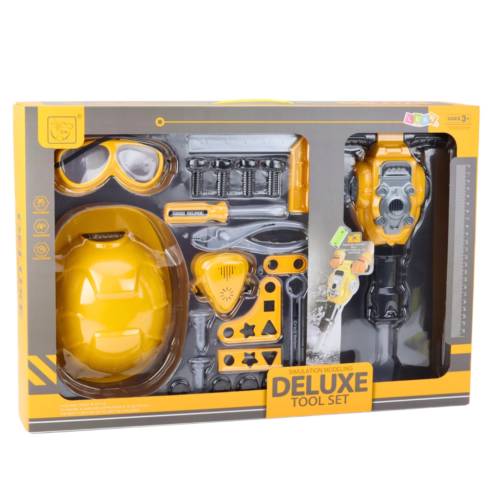 Deluxe Tool Set yra pilnas, realistiškas ir patrauklus žaislas vaikams, kurie mėgsta stebėti suaugusiųjų pasaulį ir svajoja apie savo dirbtuvėlę. Šiame rinkinyje yra 21 elementas, leidžiantis vaikui įsijausti į statybininko ar inžinieriaus vaidmenį.