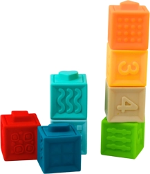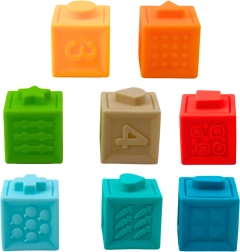 Guminės edukacinės kaladėlės sujungia pramogą ir mokymąsi. Ant kiekvienos kaladėlės pusės rasite skirtingas struktūras: skaičius, tekstūras, reljefinius gyvūnėlius ir geometrinius raštus, kurie skatina lytėjimą ir pažinimą. Kiekviena kaladėlė turi specialiai sukurtus iškilimus ir įdubas, leidžiančius jas jungti tarpusavyje, statyti bokštus ir dėlioti, taip lavinant loginį mąstymą ir kantrybę.