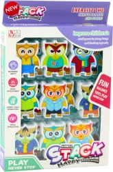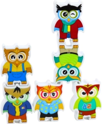 Pelėdų žaidimas skirtas vaikams, norintiems lavinti savo loginius ir motorinius įgūdžius. Rinkinyje yra 18 ryškių spalvų pelėdų figūrėlių, pagamintų iš saugaus, netoksiško medžiagos. Dėl specialių iškilimų ir jungčių vaikai gali kurti bokštus, tiltus ar kitas 3D struktūras.