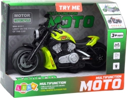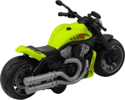 Vaikiškas motociklas išsiskiria intensyvia žalia spalva ir pagamintas iš aukštos kokybės plastiko, atsparaus kasdieniam naudojimui. Motociklas turi plačius ratus, tvirtą korpusą ir ergonomiškas rankenas stabilumui ir patogumui žaidžiant. Jo forma įkvėpta klasikinių vienvagių transporto priemonių, o tokios detalės kaip realistiškai suprojektuotas variklis ir kėbulo linijos suteikia motociklui autentišką išvaizdą.