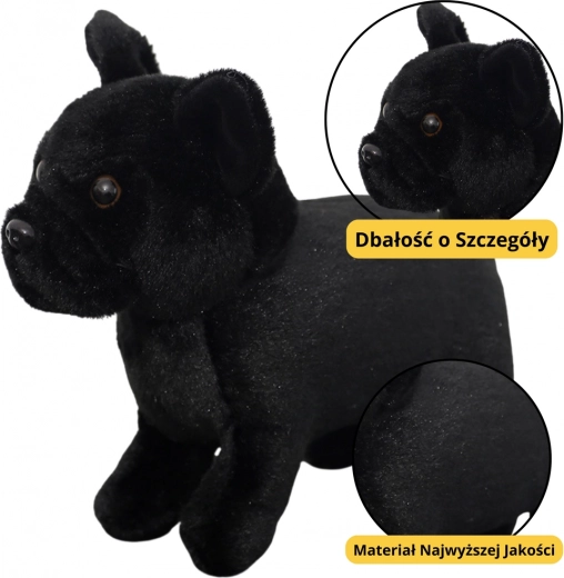 Juodas pliušinis šuniukas išsiskiria mielu snukučiu, stačiomis ausytėmis ir tvirta konstrukcija, dėl kurios jis atrodo realistiškas ir žavus. Dėl kompaktiškų matmenų jis lengvai telpa vaiko rankose, tad patogu nešiotis, glausti ar dėti į lovelę. Puikus draugas miegui, kasdieniams žaidimams arba kaip dekoratyvinis akcentas vaikų kambaryje.