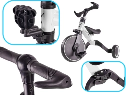 - 3 režimai: balansinis triratukas, triratukas su pedalais, pusiausvyros treniruotė su susiaurintais galiniais ratais