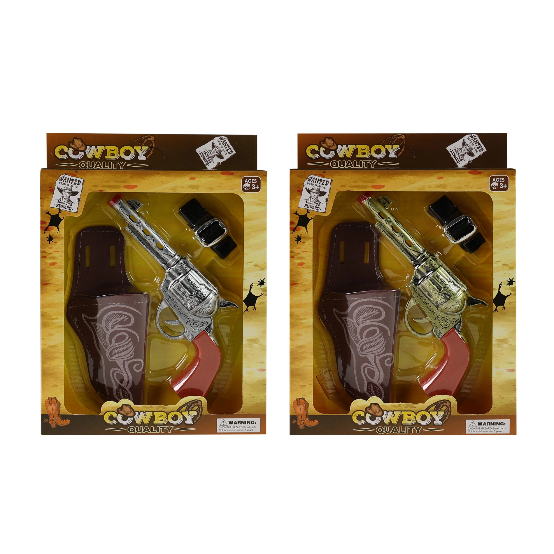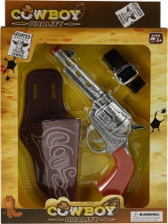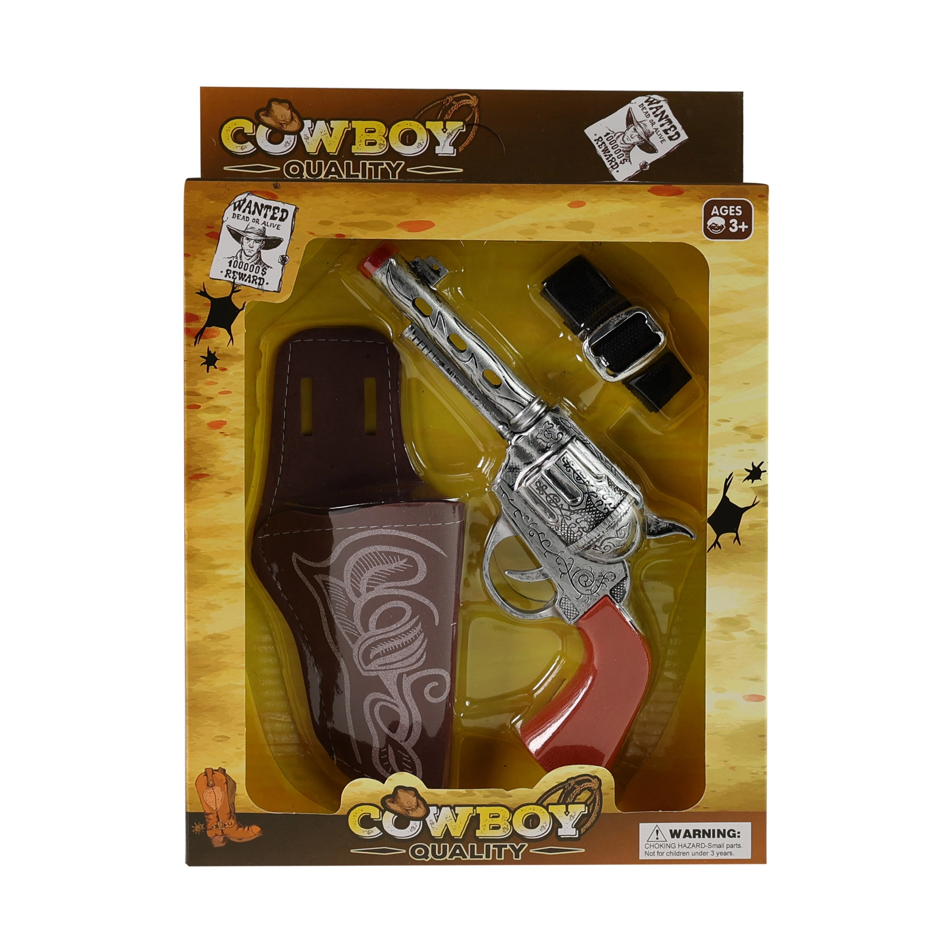 Tapk laukinių vakarų herojumi su šiuo šauniu rinkiniu mažiesiems kaubojams! Rinkinyje yra pistoletas su garso efektais, dėklas ir diržas prisegimui.