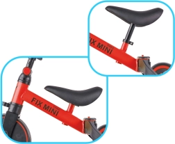 Trike Fix Mini siūlo tris važiavimo režimus: balansinį dviratuką su trimis ratais patiems mažiausiems, klasikinį triratuką su pedalais ant priekinio rato ir treniravimo režimą su suartintais galiniais ratais pusiausvyrai lavinti prieš pereinant prie dviračio su dviem ratais. Dėl greito konfigūracijos keitimo dviratuką akimirksniu pritaikysite pagal vaiko amžių ir gebėjimus.