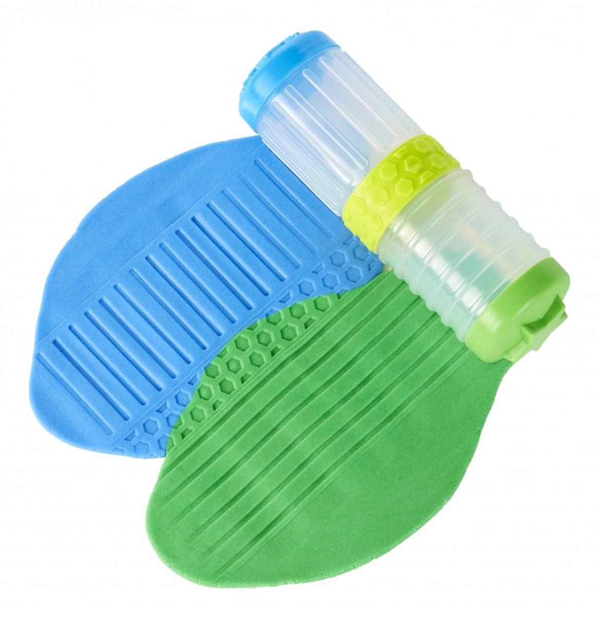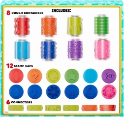 Kiekvienas indelis yra žaidimo dalis – su juo galima kurti įdomius raštus ir naudoti antspaudus bei kitus priedus. Rinkinyje yra 8 plastilino tūbelės, 12 dangtelių su linksmomis antspaudų formomis ir 6 jungtys su įvairiais raštais kūrybai.