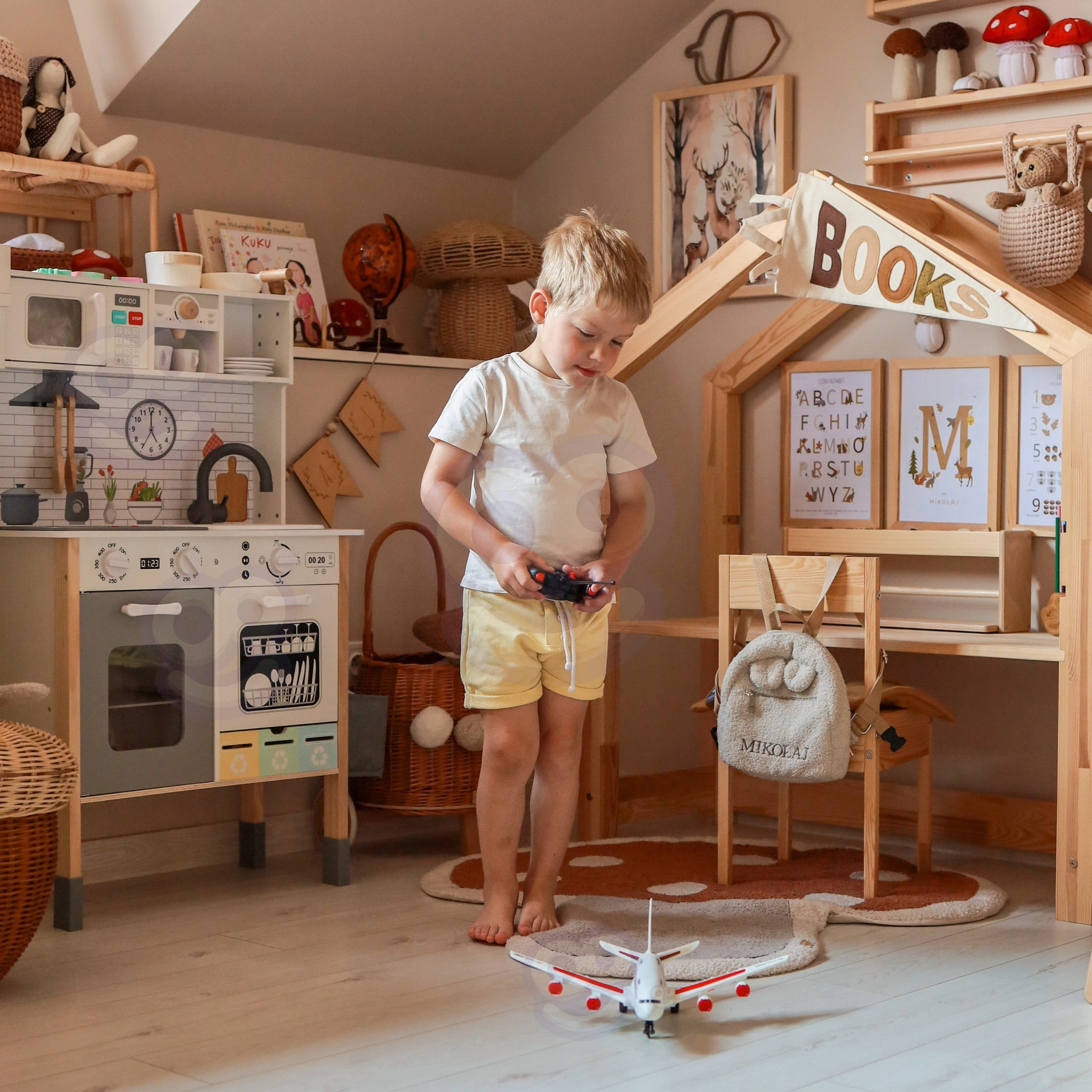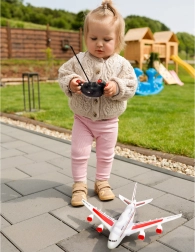 Modelis skirtas riedėti grindimis ar šaligatviu – vaikai gali treniruoti riedėjimą, posūkius ir stabdymą, kurti savo „oro uostą“ ir oro transporto scenarijus. Nuotolinio valdymo pultas lengvai naudojamas ir padeda lavinti motoriką bei vaizduotę.