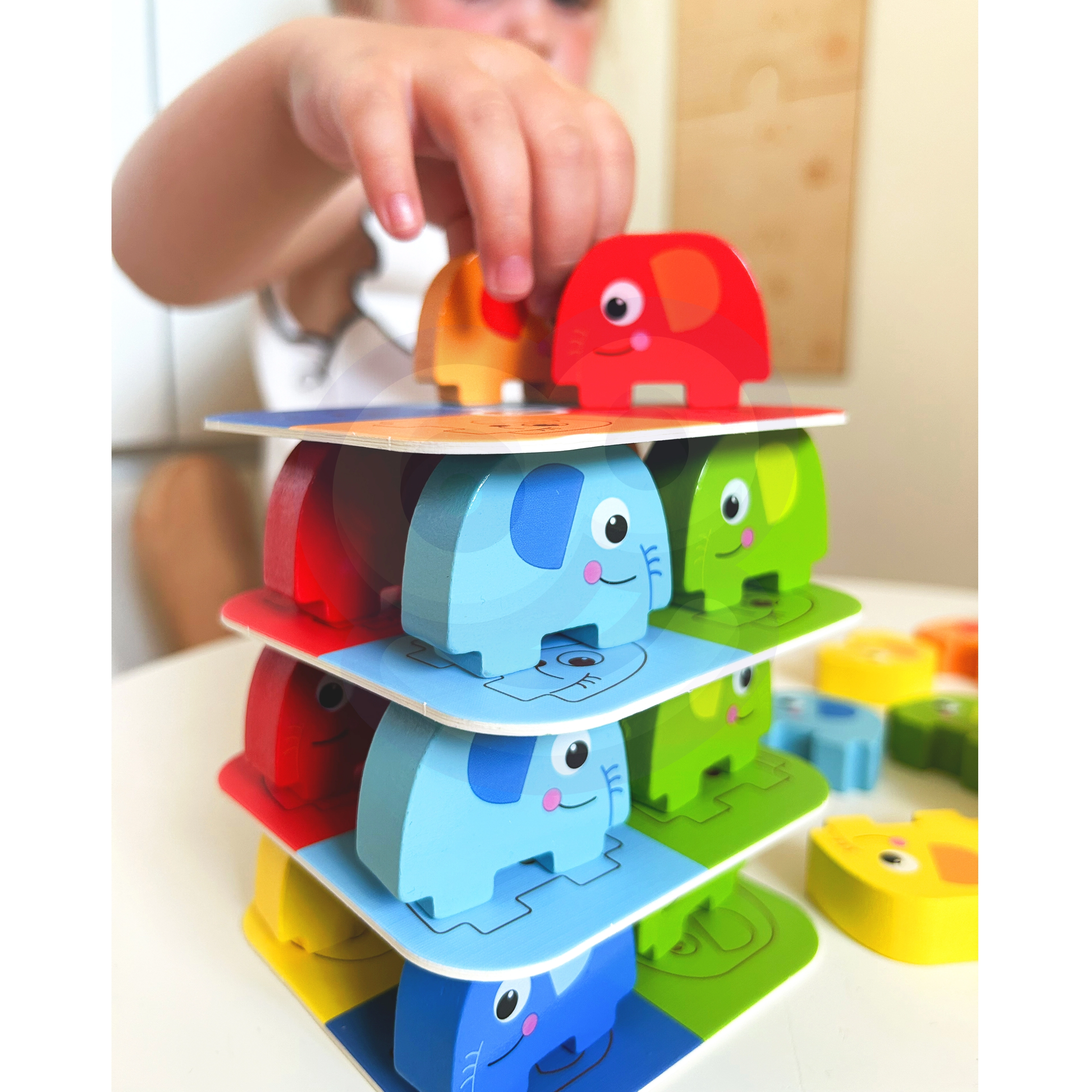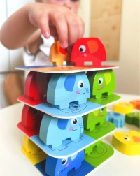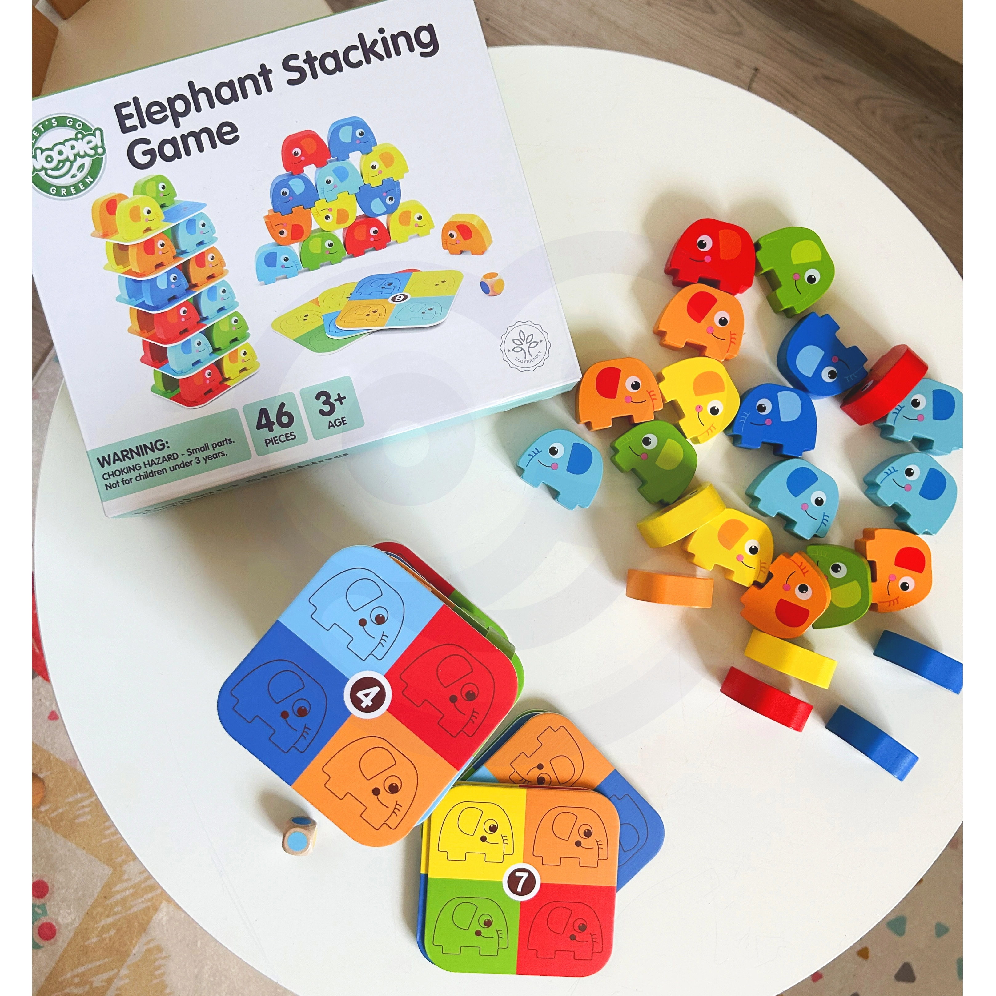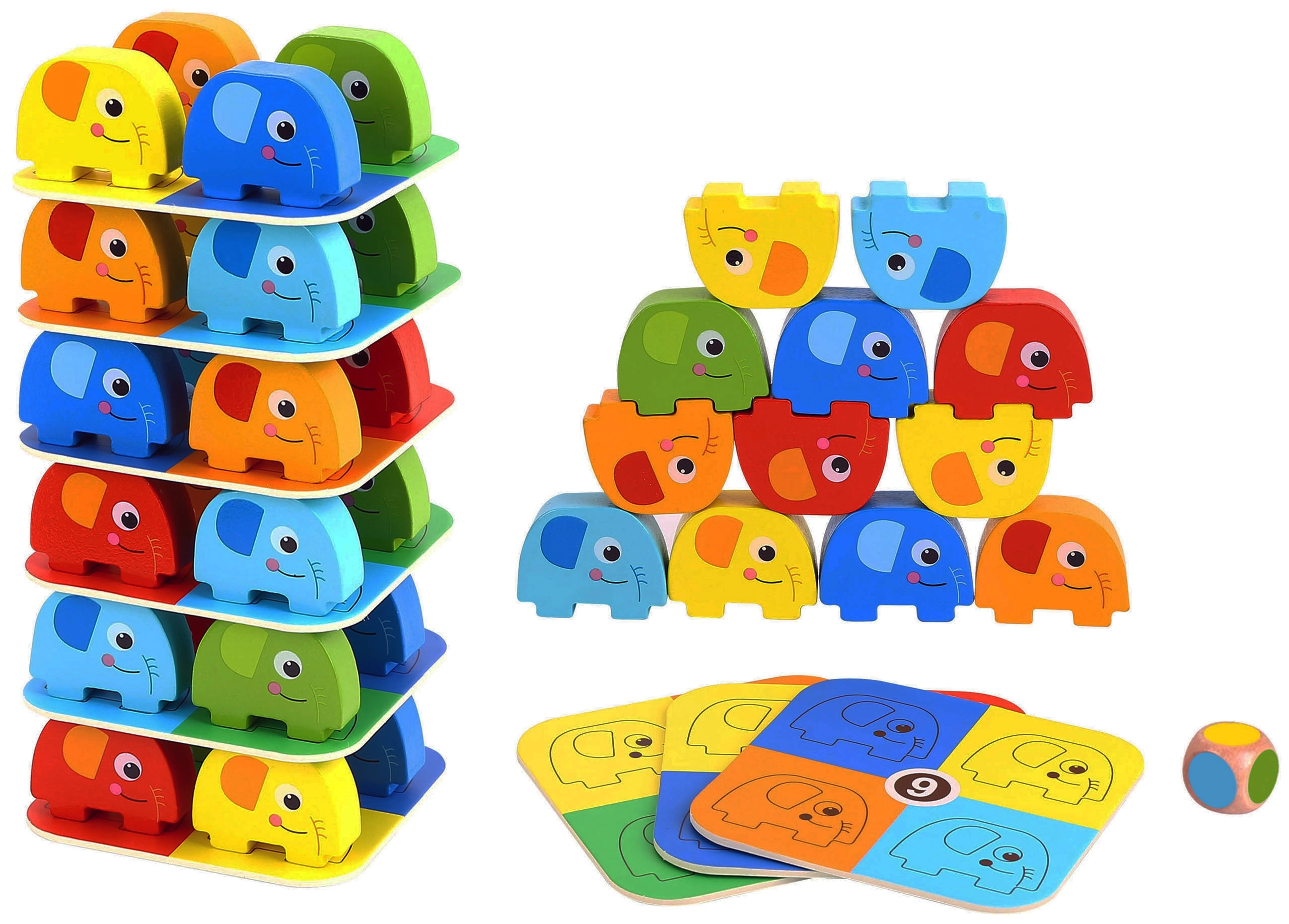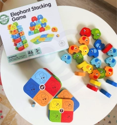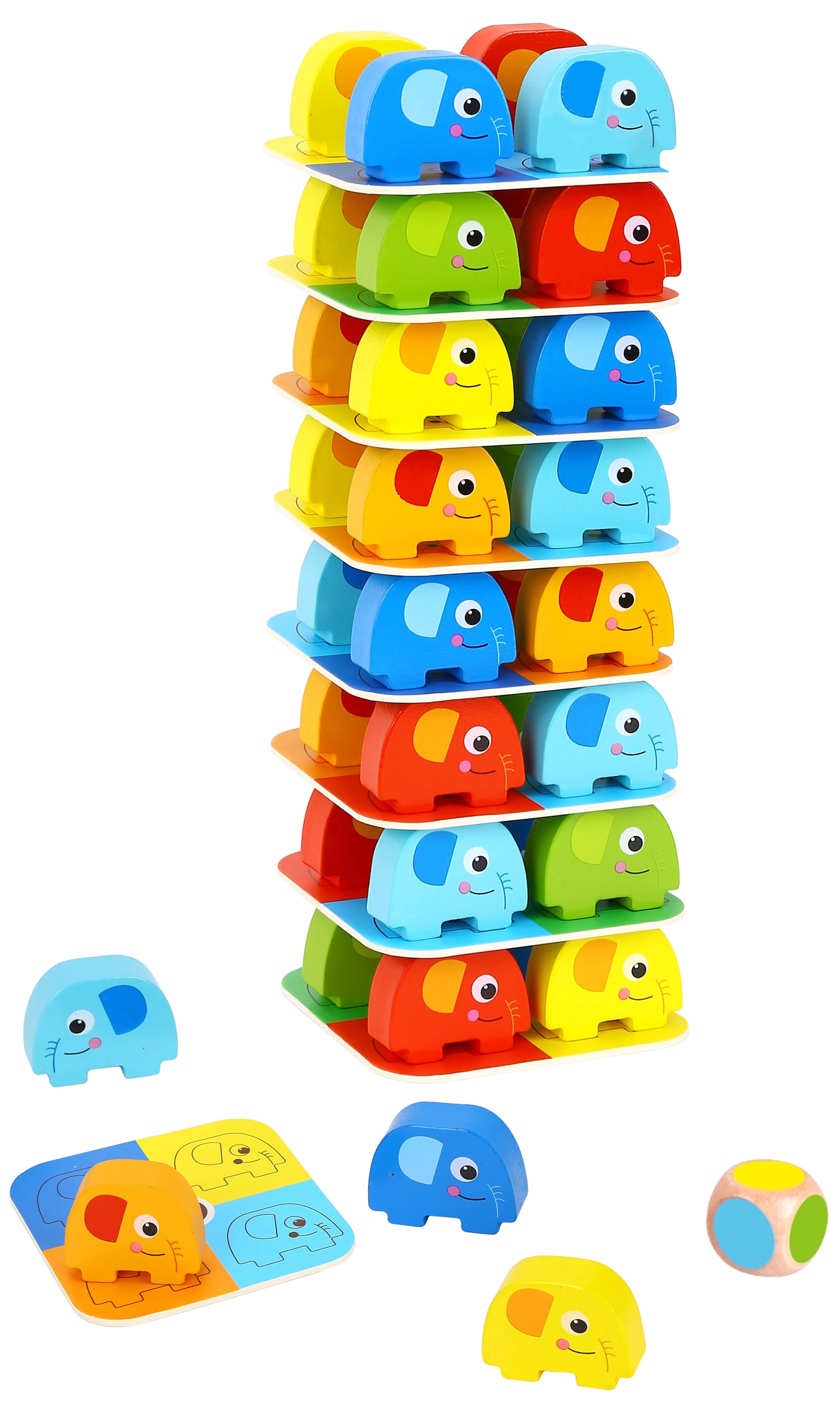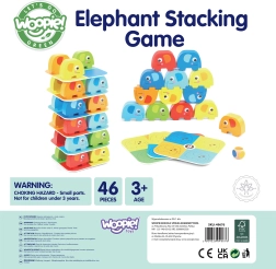 Patirkite smagumą ir nuotykius su Woopie žaidimu Dramblys ant dramblio. Šiame žaidime yra 46 detalės, įskaitant spalvingus kaladėlius ir žaidimo korteles. Jis puikiai tinka smagiam laikui su šeima. Ryškios spalvos ir mielos formos traukia dėmesį ir siūlo dvi įtraukiančias žaidimo galimybes – kaip dėliojimo žaidimą arba Jenga alternatyvą.