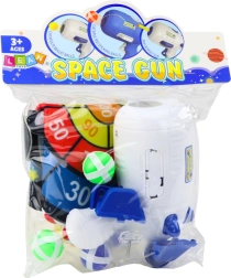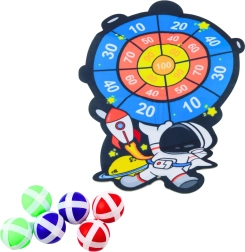 Pistoleto, primenančio kosminį laivą, korpusas pagamintas iš tvirto plastiko, o spyruoklinis mechanizmas leidžia lengvai užtempti ir tiksliai šaudyti. Šeši komplekte esantys kamuoliukai su lipniu velcro patikimai prilimpa prie taikinio, todėl patogu skaičiuoti taškus. Greito tvirtinimo kabliukas leidžia pakabinti ant sienos, durų ar lentos, o patogi plėvelinė pakuotė palengvina laikymą ir transportavimą.