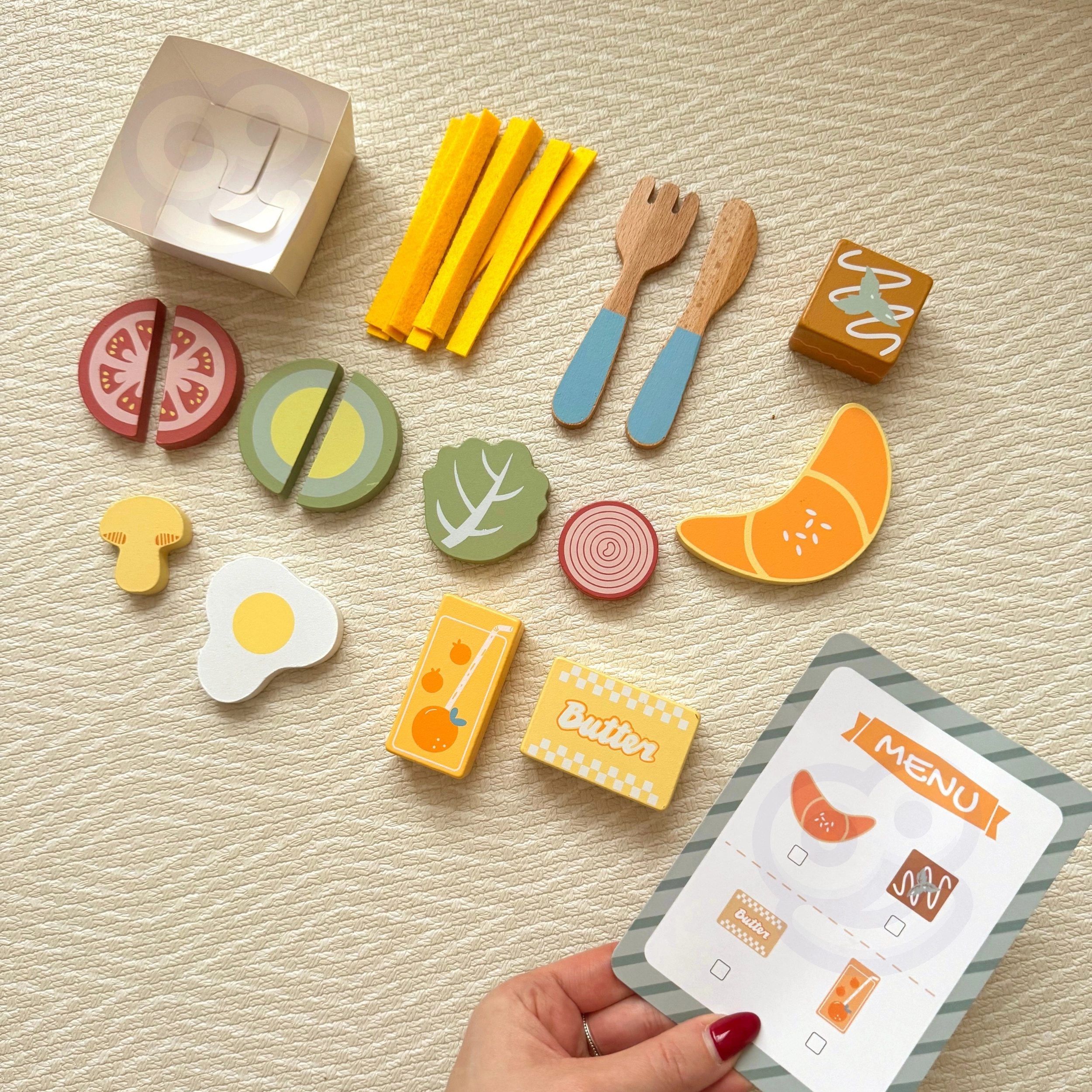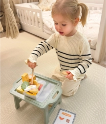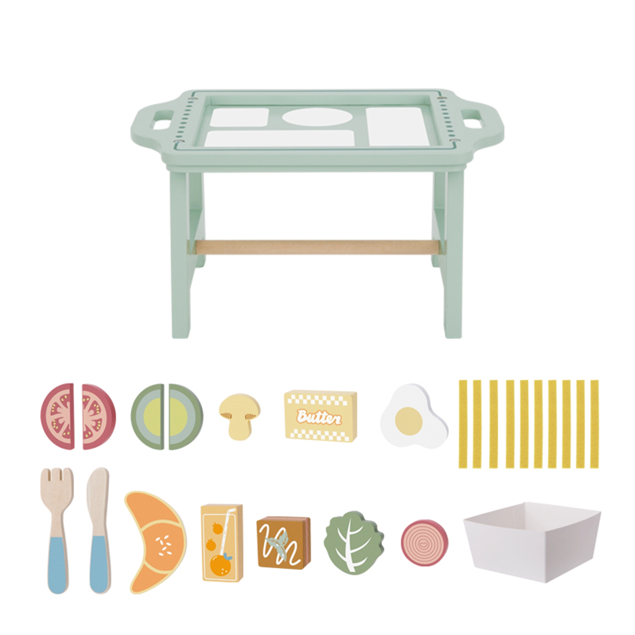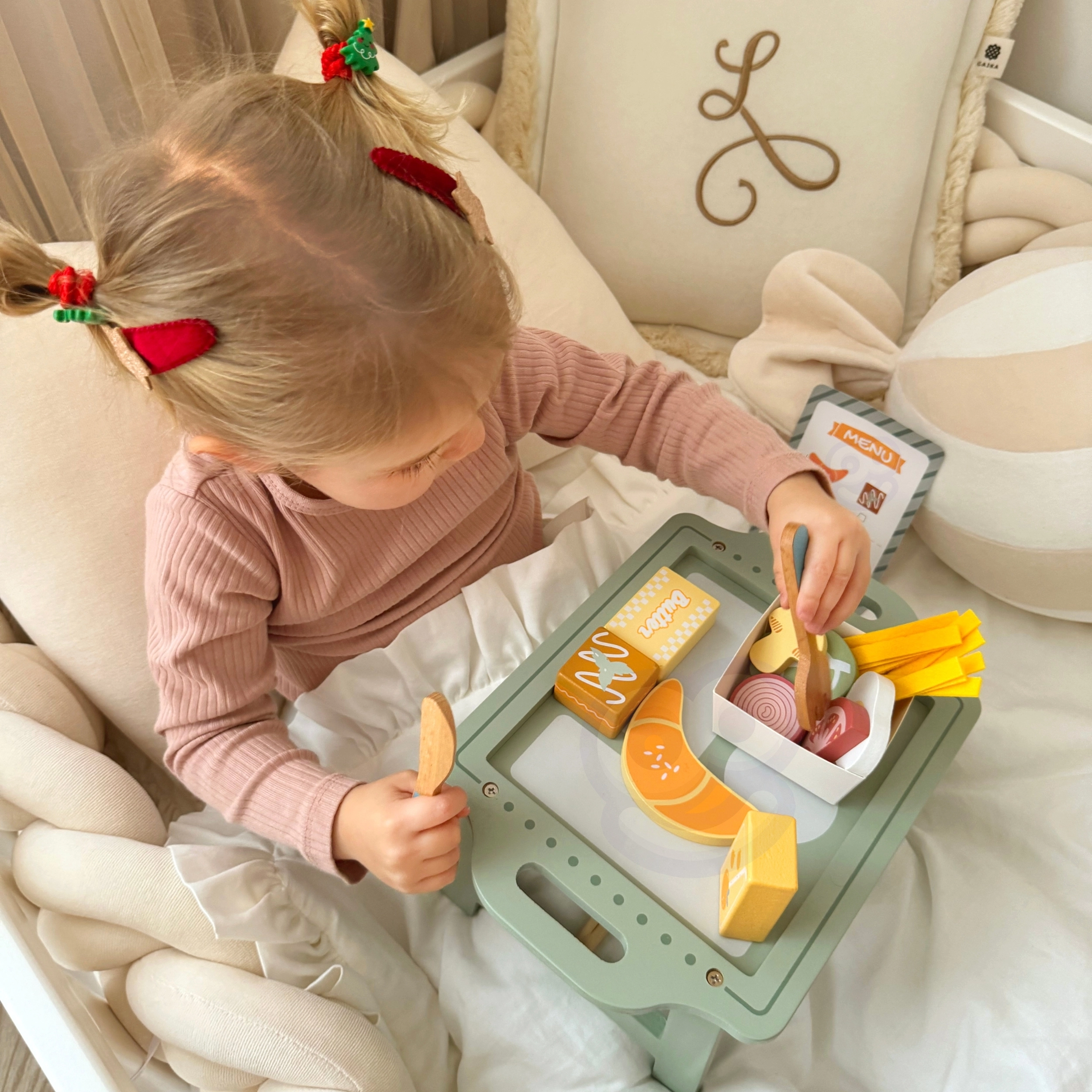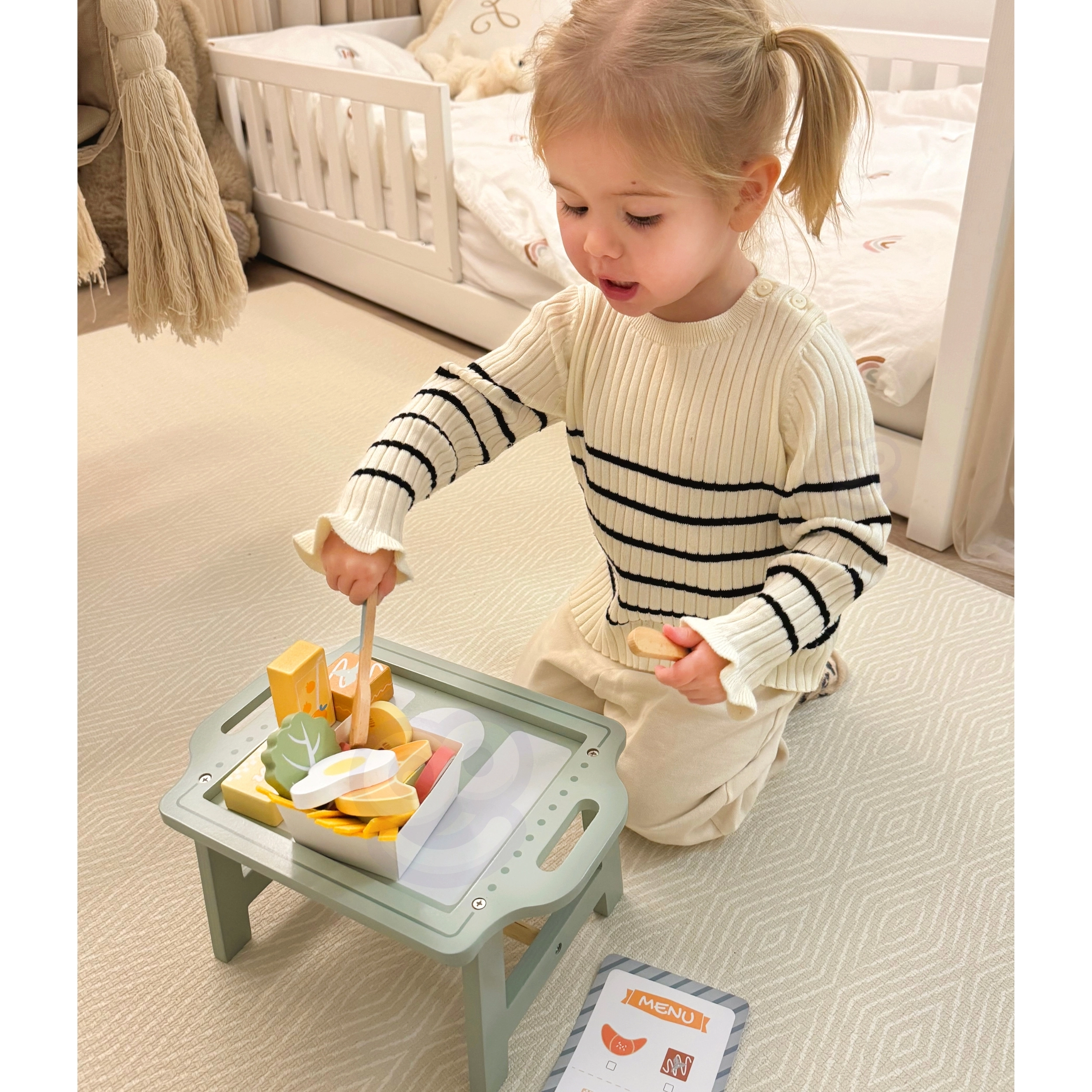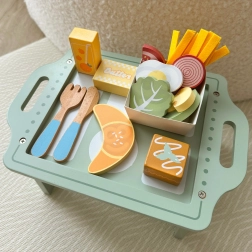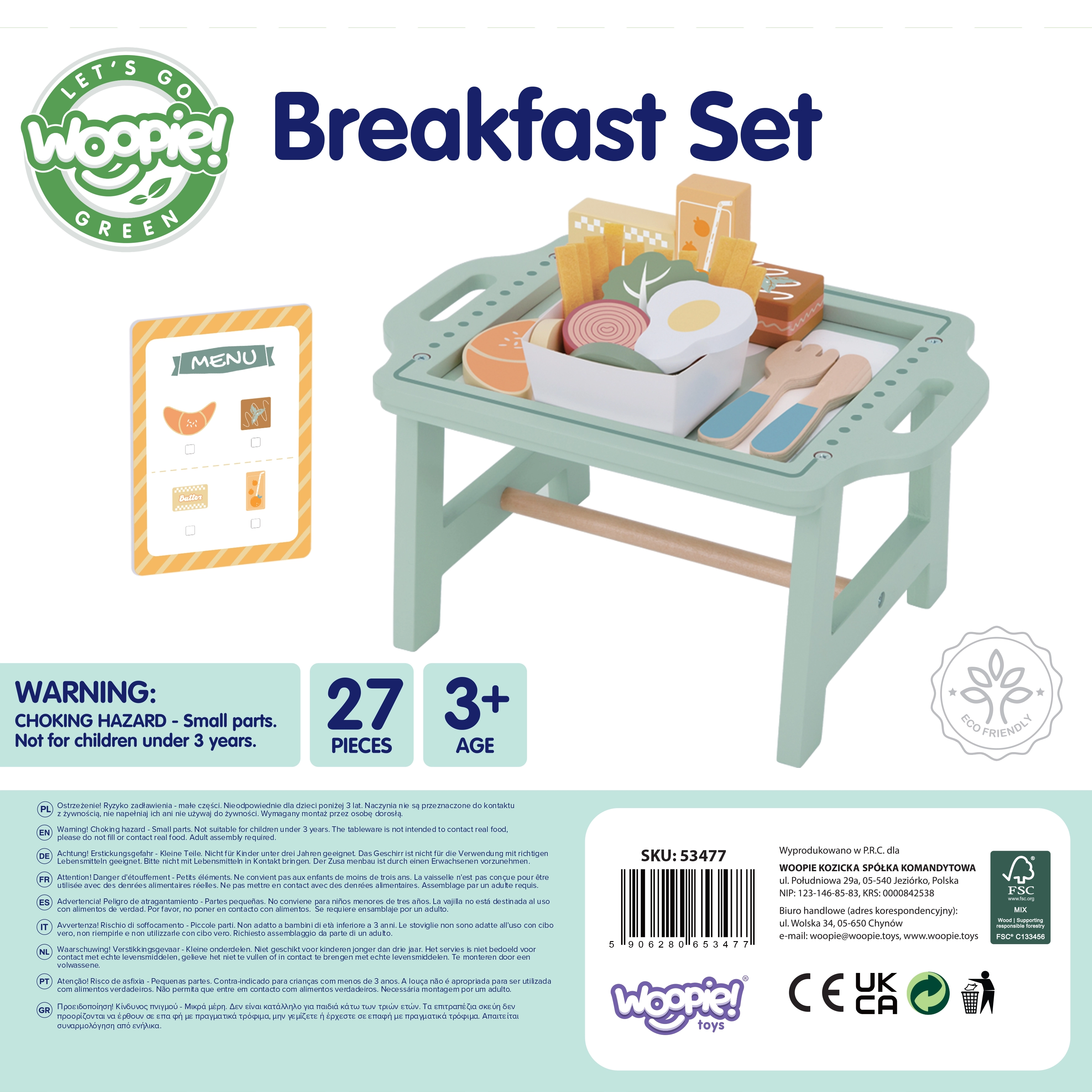 Woopie Green Pusryčių Rinkinys su padėklu ir mediniais priedais – tai daugiau nei žaislas, tai būdas įkvėpti jūsų vaiką naujiems kulinariniams nuotykiams. Dėl realistiškai atrodančių medinių elementų ir stilingo padėklo jūsų vaikas gali visiškai pasinerti į žaidimą. Tinka vaikams nuo 3 metų, šiame rinkinyje yra net 26 elementai, pagaminti iš natūralios medienos, užtikrinančios patvarumą ir saugumą.