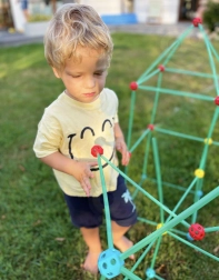 Rinkinys idealiai tinka ugdyti jūsų vaiko kūrybinius įgūdžius. Iš viso yra 128 elementai, kurie leidžia pastatyti įvairias erdvines konstrukcijas, įskaitant palapinę.